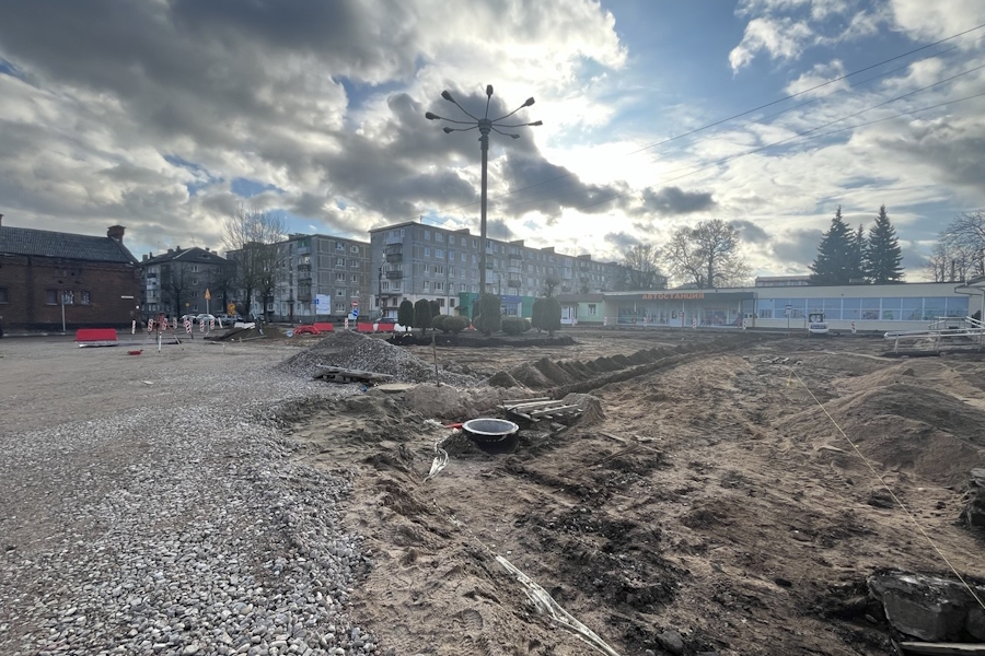 Работы начались в сентябре 2024 года. Как сообщили «Новому Калининграду» в администрации Советского городского округа, к настоящему времени подрядчик — ООО «УК АркСтоун» — установил камеры видеонаблюдения, вырубил деревья, демонтировал покрытия, в том числе исторические плиты вдоль воинской части и на противоположной стороне улицы, смонтировал ливнёвку и канализацию под электроснабжение на ул. Красноармейской, подключил к сетям водоснабжения и водоотведения торговый павильон и обустроил подстилающие слои под автостоянку на Привокзальной площади. Выполнены работы по обратной засыпке траншей на площади Ленина.