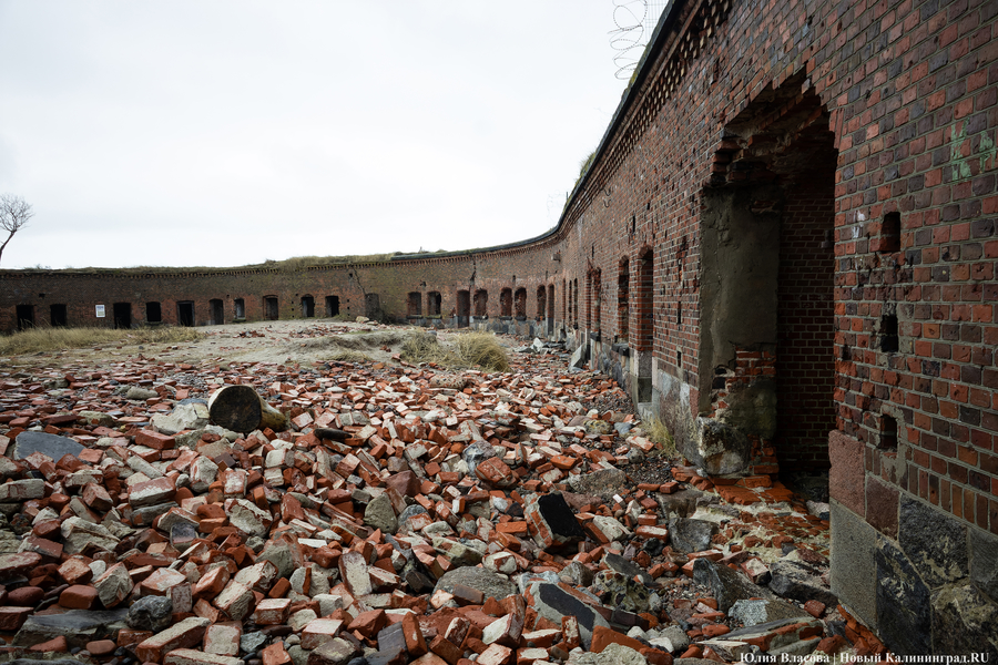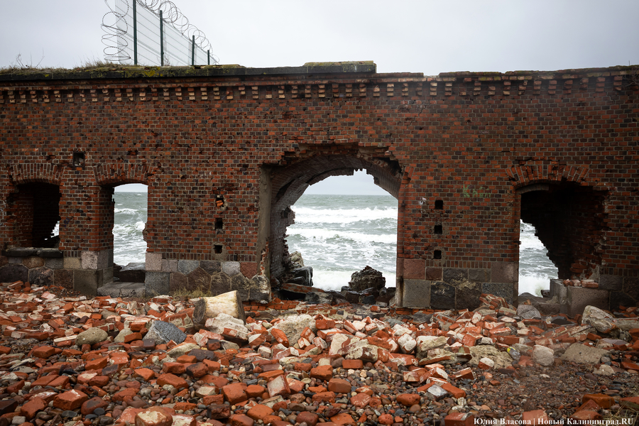 В середине ноября прошлого года форт Западный, как сообщал музейный паблик «Старый люнет», потерял последнюю потерну и капонир. Тогда же представители «Балтберегозащиты» рассказали, что обрушения вызвал циклон «Мартина», повредивший искусственную авандюну на Балтийской косе. Через месяц музейщики из «Старого люнета», пристально наблюдающие за всеми событиями на Балтийской косе, написали, что собственник форта активно готовится к сезону штормов и закрывает для посещений все потенциально опасные ходы и площадки.