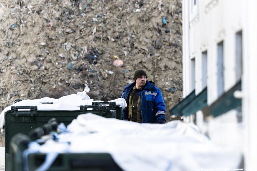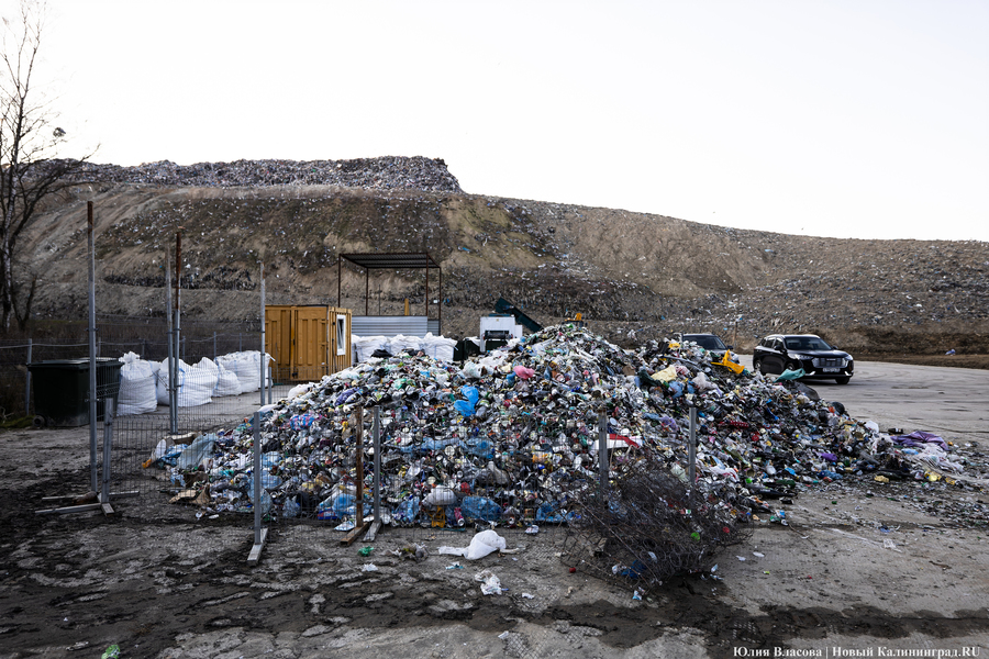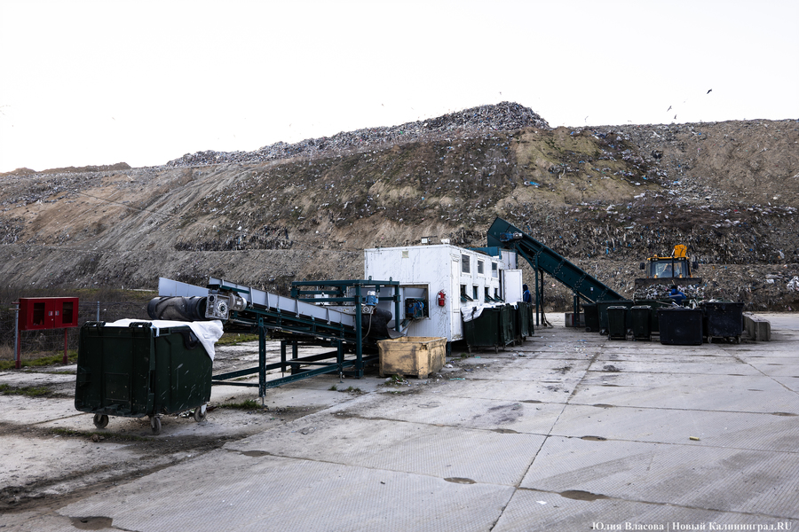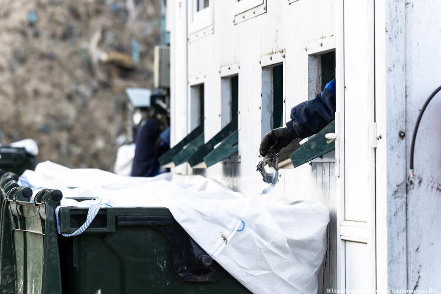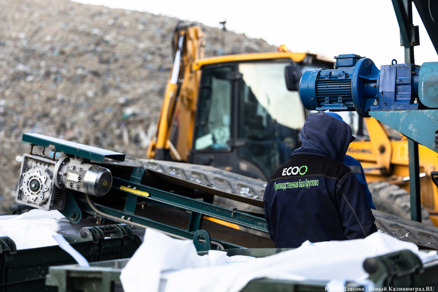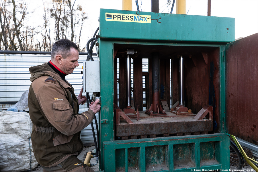 Рядом со свалкой в Круглово, всё ещё принимающей отходы (ранее министр природных ресурсов и экологии Оксана Астахова сообщала, что полигон остаётся в резервной схеме — прим. «Нового Калининграда»), есть бетонная площадка, на которой ежедневно сортируется содержимое контейнеров для раздельного сбора. За смену линия отбирает полторы-две тонны готовой продукции, этот объём потом прессуется в брикеты и фасуется в плотные мешки-бэги. В месяц, согласно отчётам, с полигона выходит примерно 35-40 тонн готовой продукции.