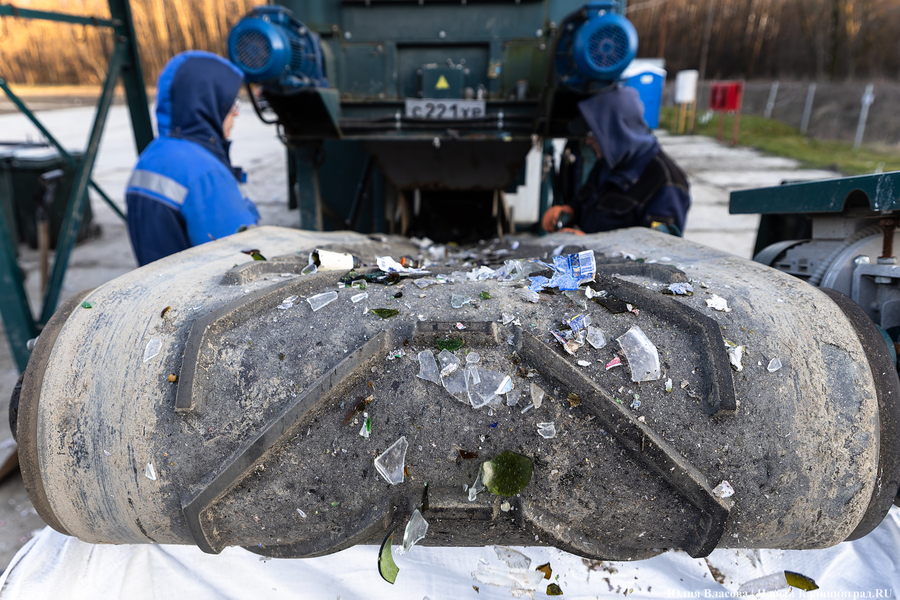 «Внутри региона стекло у нас не принимают, поэтому мы отправляем его в большую Россию, — поясняет он. — На сегодняшний день успели отправить четыре железнодорожных вагона на завод в Липецкую область. Там, кстати, очень довольны качеством. Да, мы не отделяем цветное стекло от белого, и оно идёт вперемешку, однако стекло у нас рассортировано по фракциям: есть мешки с целыми бутылками, есть с битыми, а есть с дроблёным стеклом. Дальше на заводе всё это в центрифуге промывают — и готово».