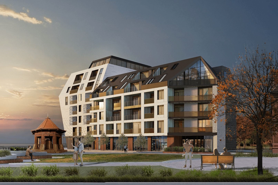 «Princesse Royal станет локальной доминантой на побережье Зеленоградска. Лаконичный архитектурный проект мультифункционального отеля Princesse Royal, оставаясь в рамках современной эстетики, неизбежно заглядывает в будущее. Дизайн лобби и отделка апартаментов подтверждают это своей минималистичностью и в то же время деликатным отношением к материалам и формам. Захотелось ли вам внезапно побаловать своих близких изысканным десертом или украсить комнату композицией из цветов, расслабиться в спа или зарядиться энергией моря на прогулке по променаду — вам поможет Princesse Royal. Богатая инфраструктура эффективно удовлетворяет разнообразные запросы жильцов», — гласит описание.
