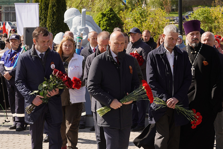 После зажжения Вечного огня и возложения гвоздик к мемориалу делегация проследовала через новый детский сад, рассчитанный на 72 места, в школу, где губернатора ожидали жёны участников специальной военной операции. Проходила встреча в помещении музея, где пожелтевшие фотографии ветеранов Великой Отечественной теперь соседствуют с распечатанными на принтере портретами ветеранов СВО, с шевронами и касками погибших в ходе спецоперации.