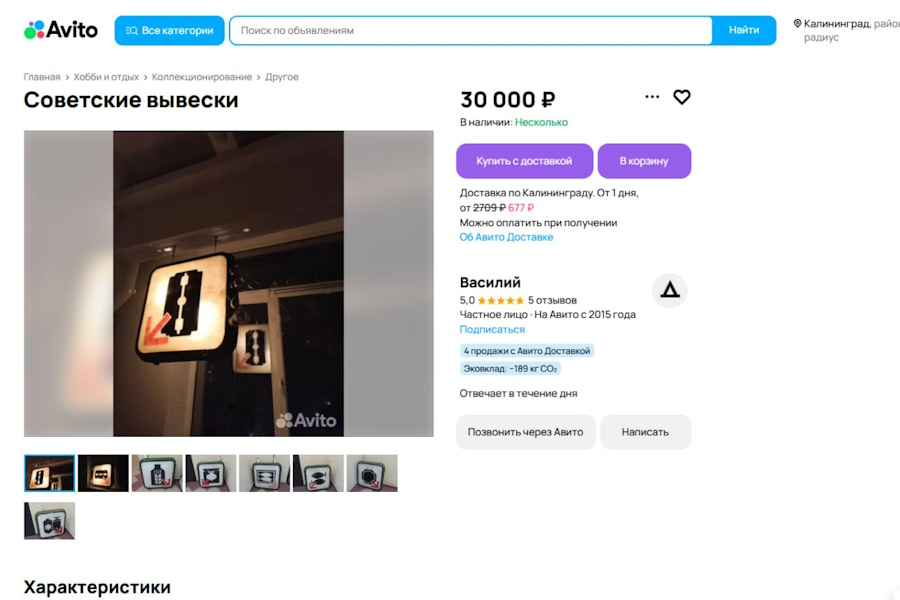 Обладателем части вывесок стал калининградский дизайнер Василий, который сообщил «Новому Калининграду», что одну из них он встроил в интерьер собственной квартиры, две оставил в своей студии, а остальные продаёт через сайты частных объявлений. «Я охотился за этими вывесками целый год, — рассказал он. — Ту, что с логотипом универсама, мне продать отказались, но я приобрёл девять штук. Две уже продал. Одна из них уехала в „большую Россию“, к коллекционеру, а вторая осталась внутри региона».