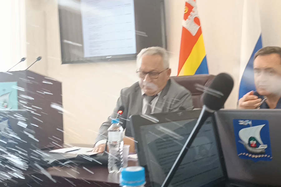 Внезапно обоих перебил Саломохин, возмутившийся тем, что его снимает на видео глава фракции КПРФ Сергей Севостьянов. «Я вам права не давал меня снимать, Сергей Сергеевич», — повысил голос зампредседателя горсовета. «Мы не дома у вас», — ответил Севостьянов, продолжая съёмку. «А я тебе сейчас...», — крикнул Саломохин, плеснув воду из стакана в сторону оппонента. «Вы что позволяете себе?», — возмутился Севостьянов. Задело и сидевшую рядом депутата от КПРФ Тамиллу Чернышеву.