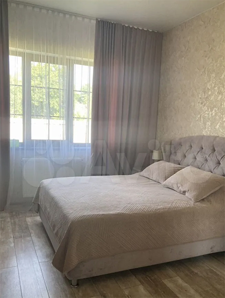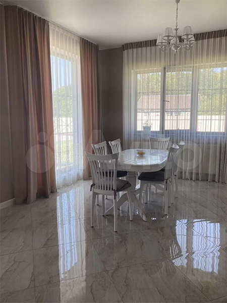 Двухэтажный дом площадью 160 м² был построен в посёлке Долгоруково в 2000 году «по типовому литовскому проекту в трёx уровнях». Сообщается о наличии цокольного хозяйственного и жилого этажей площадью 70 м² каждый, а также 20-метровой мансарды. На основном этаже расположены прихожая, три комнаты, санузел и кухня. Всё необходимое для проживания, как уточняется, есть в одной комнате. Остальные, как пишет автор объявления, «чистый холст для ваших дизайнерских решений» (в народе — «серый ключ»).