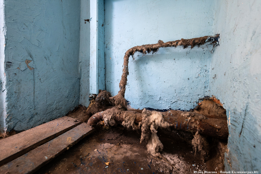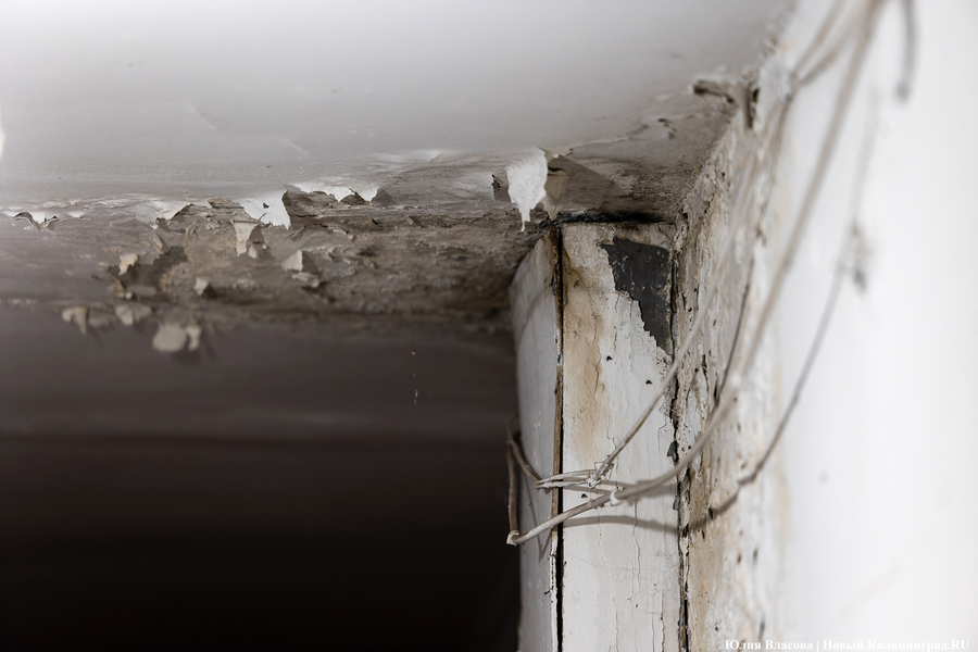 По словам Анастасии, управляющая компания провела обследование дома, и оно показало, что его износ составляет 84%. «Например, система канализации находится в крайне бедственном положении. А моя квартира на первом этаже как раз соседствует с одним из технических подвалов и из-за ветхости труб, что там проходят. Можно сказать, что сегодня все соседи гадят мне под дверь! Из дырявых сетей зловонные массы регулярно вытекают и в подпол в общем коридоре, и под мою квартиру. Дом просто разваливается изнутри. Постоянная влага тянет за собой плесень. Я только в минувшем мае сделала ремонт, а обои уже отваливаются. Чернота появляется снова, хотя я жестко в течение многих дней все обрабатывала спецсредствами и пропитками. Но прошло три месяца калининградского лета, и все вылезло по новой».