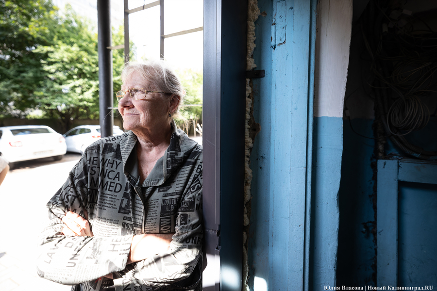 «Я здесь живу уже 40 лет и не могу выбраться», — вступает в разговор еще одна жительница — Галина Афанасьевна. На вопрос, как она здесь оказалась, грустно шутит: «А для этого нужно было работать в обкоме профкома „Калининградстроя“ и остаться без нормального жилья».