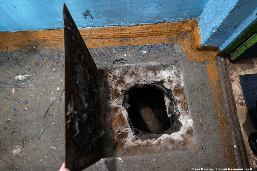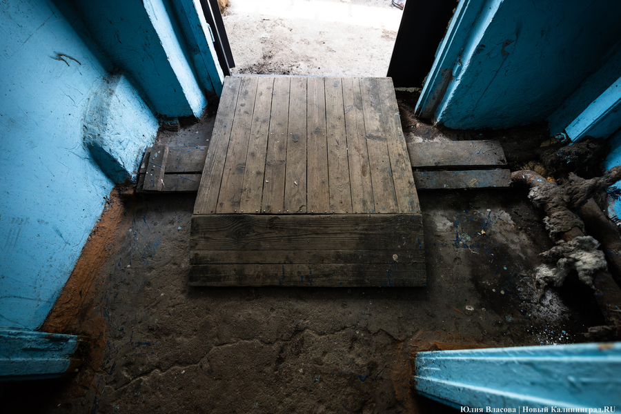 В том, что Анастасия не преувеличивает, корреспонденты «Нового Калининграда» убедились сами, заглянув в подъезд. Во-первых, лишь открыв его дверь, мы увидели странный мостик из фанеры. Как оказалось, его кладут для того, чтобы не наступать на те самые проходящие внутри дома трубы и то, что из них вытекает. Переходишь мост, как границу между мирами, и в нос сшибает непередаваемое подогретое канализационное амбре... «А мы этим годами дышим», — говорит одна из жительниц.