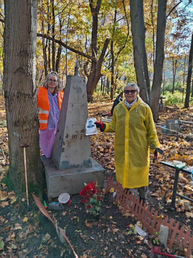 После вступительных слов молодёжь и старшее поколение взялись за уборку листьев и веток, а также за покраску надгробий и оград. Параллельно с этим волонтёрам наконец удалось установить на место опрокинутую гранитную стелу на могиле железнодорожника, директора-полковника службы движения Ивана Михайловича Соколова (в марте этого года «Новый Калининград» писал, что её обнаружили во время одного из субботников).