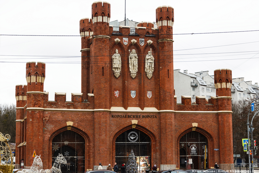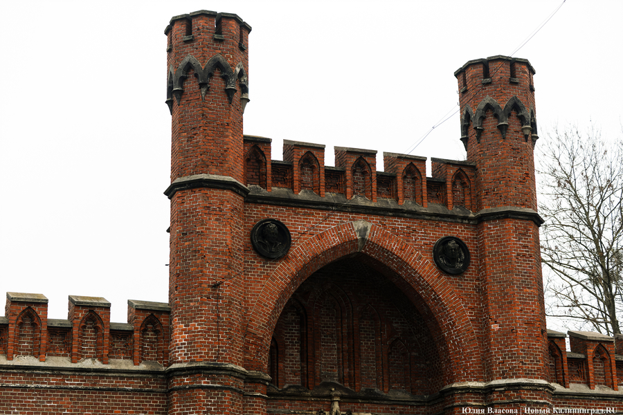 Следующая достопримечательность особая. Королевские ворота — один из символов города. Их изображение стало эмблемой праздника, посвященного 750-летию Кёнигсберга-Калининграда, которое отмечалось в 2005 году. Но все могло сложиться по-другому. Будь судьба к воротам менее благосклонна, сейчас на их месте в лучшим случае было бы пустое место, а в худшем — очередная ничем не примечательная высотка. Впрочем, обо всем по порядку. Место, на котором в 1843 году был заложен первый камень Королевских ворот, было намоленным. Изначально там стояли простенькие Кальтховские ворота, которые назывались так, по всей видимости, потому, что недалеко от них находилось предместье Кальтхоф. В 1717 году их, когда они совсем обветшали, снесли. Новые на том же месте были построены лишь во время Семилетней войны, когда Кёнигсберг в 1758-1762 годах входил в состав Российской империи. Названы ворота были Гумбинненскими, потому что шедшая через них дорога вела в Гумбиннен, современный Гусев.