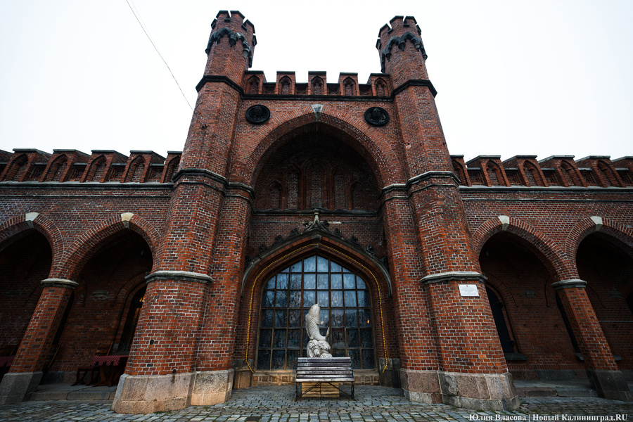 Первое, что попадается на глаза — Росгартенские ворота. Возможно, самые красивые из восьми сохранившихся в городе. В первую очередь это, разумеется, оборонительное сооружение, важная часть второго вального обвода, который начали возводить в Кенигсберге во второй половине XIX века.
