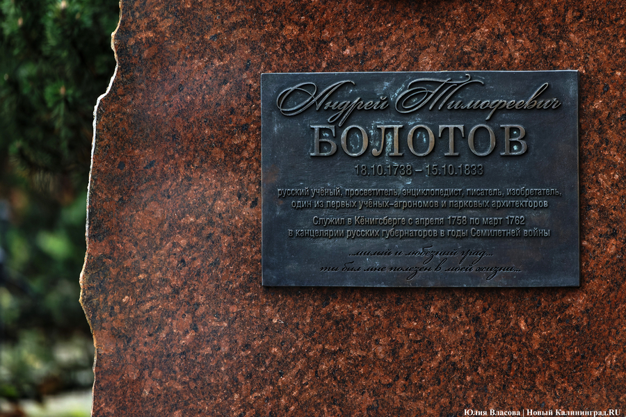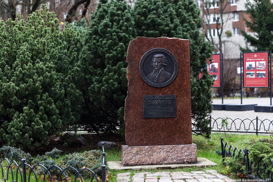 Недалеко от Королевских ворот в октябре 2023 года был открыт памятный знак ученому и просветителю Андрею Болотову работы Сергея Арищенко и Алёны Липинской. На лицевой стороне отполированного гранитного валуна укреплены медальон с барельефом и памятная доска с надписью: «Андрей Тимофеевич Болотов (18 октября 1738 года — 15 октября 1833 года). Русский ученый, просветитель, энциклопедист, писатель, изобретатель, один из первых учёных-агрономов и парковых архитекторов. Служил в Кёнигсберге с апреля 1758 года по март 1762 года в канцелярии русских губернаторов в годы Семилетней войны». А еще на камне выбиты такие слова о Кёнигсберге: «... милый и любимый град... ты был мне полезен в моей жизни...» Это фраза из записок Болотова. Она большая и очень эмоциональная. Фактически это признание в любви. «Ты был мне полезен в моей жизни, ты подарил меня сокровищами бесценными, — писал Болотов. — В стенах твоих сделался я человеком и спознал самого себя, спознал мир и все главнейшее в нем, а что всего важнее — спознал творца моего, его святой закон и стезю, ведущую к счастию и блаженству истинному». (цитата по книге «А.Т. Болотов о Кёнигсберге» ( 12+) — прим. «Нового Калининграда»).