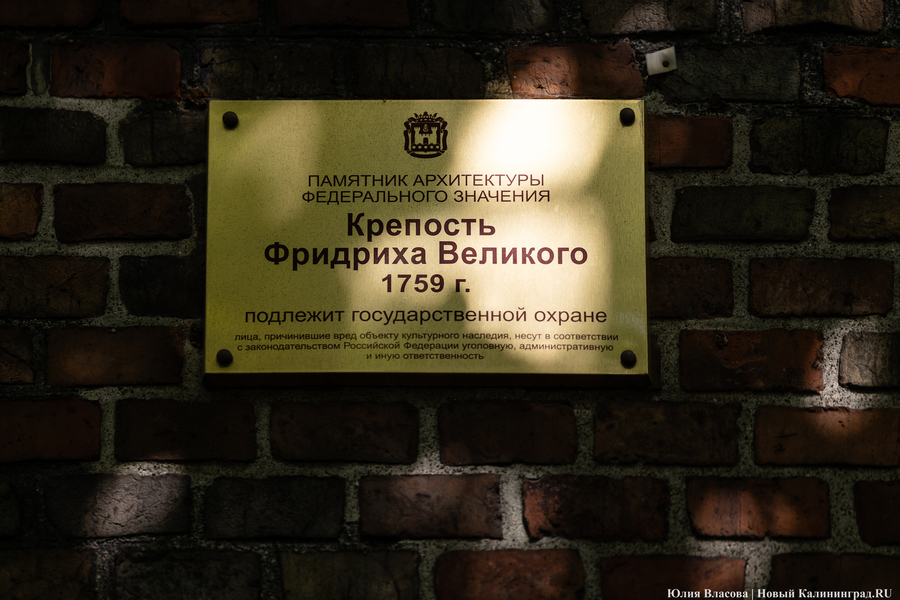Здание бывшей казармы «Кронпринц» охраняется государством. Об этом сообщает довольно старая табличка на фасаде здания. Правда, почему-то объект назван «Крепостью Фридриха Великого» с датой постройки — 1759 год. Разумеется, это ошибка. Казарма «Кронпринц» появилась гораздо позже — строительство велось с 1843 по 1849 год. Вызывает удивление даже не то, что здание «состарили» почти на сто лет, а то, что был выбран 1759-й год. Напомним, что с 1758-го по 1762-й годы Кёнигсберг входил в состав Российской империи. Что стало результатом серии ярких побед над войсками Фридриха Великого. Согласитесь, со стороны российских властей было бы странно называть новую крепость в честь поверженного врага.