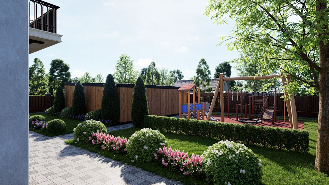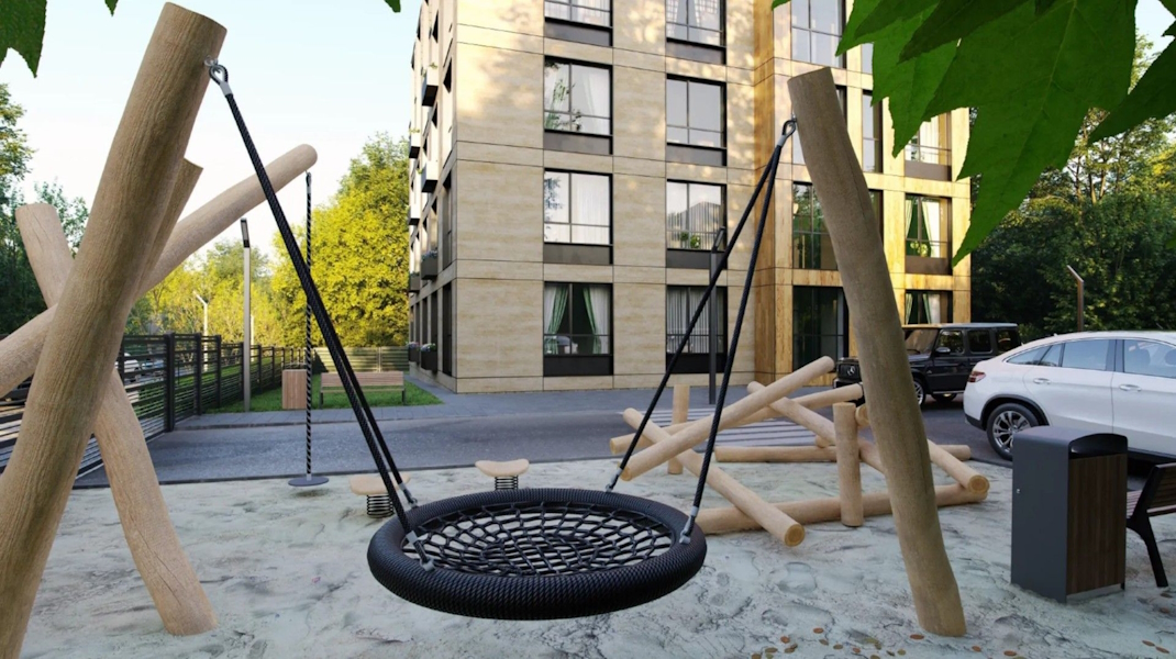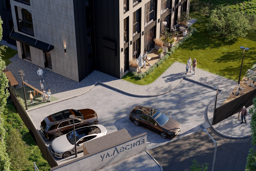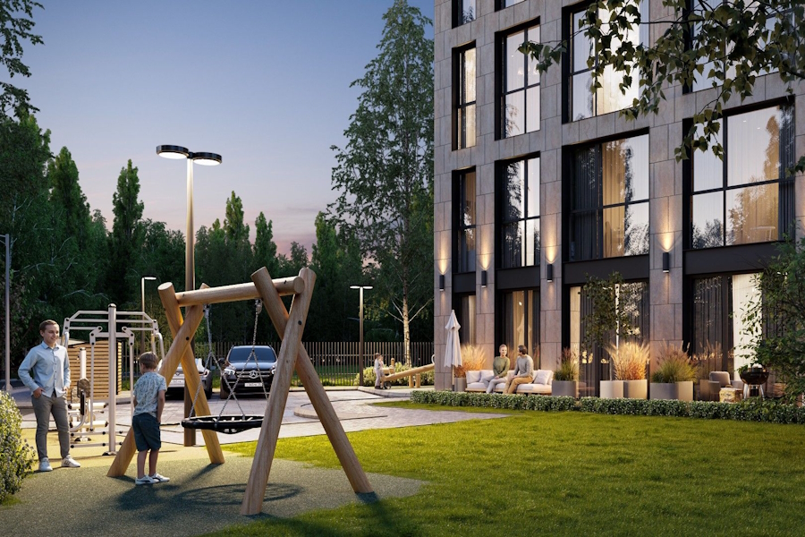 Особенностью своего «эталонного проекта» застройщик считает «двор-парк» с фонтанами, площадями и покет-парками. И это «лишь малая часть богатого благоустройства». Также сообщается об «особой атмосфере курортного отдыха» вокруг каждого дома. «На территории комплекса вы найдёте: фонтаны и скамейки, фруктовый сад и мангалы, велопарковки и место для выгула животных. В соответствии с дендропланом территория будет засажена 30 видами растений и деревьев», — говорится в описании.