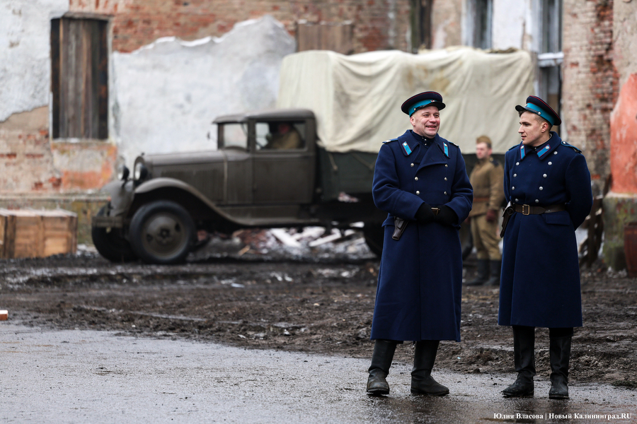Съемки сериала стартовали 4 декабря прошлого года. В течение двух с половиной месяцев съемочная группа Сергея Попова кочевала по всему региону, меняя локации. На сегодняшний день декорациями успели поработать стены виллы Порр (находится под Балтийском), бастиона Астрономического, казармы Кронпринц и дома мельника в Озерске. Вторник снежного 11 февраля группа проводила в Алленберге (комплекс не так давно приобрели казанские инвесторы). Согласно сценарию, этот день должен был переместить актёров и массовку в октябрь конца 40-х. Поначалу это получалось (двор перед съемками тщательно вымели, а снег растопили тепловыми пушками), однако с обеда зарядил такой снегопад, что съемочная группа взяла перерыв. Пока ассистенты тщетно пытались вернуть на площадку октябрь, «Новый Калининград» пообщался с режиссером картины Сергеем Поповым (ранее работал над созданием картин «ГДР» (16+) и «Дорога на Берлин» (12+)). По его словам, локацию его команда «выбрала ногами».