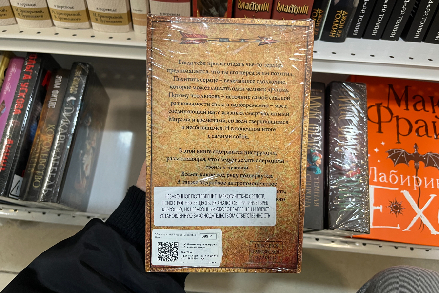 Решив выяснить, что происходит в книжных магазинах, корреспондент «Нового Калининграда» заглянула в три из них. На входе внимание привлекают детективы и любовные романы, среди наиболее популярных авторов — Майк Омера, Анна Джейн и Ана Шерри. При этом всё больше книг на полках — с предупреждающими наклейками. Судя по наблюдениям, маркирована значительная часть ассортимента: некоторые книги имеют стикер прямо на обложке без упаковки, тогда как издания в пленке маркируются только на ней. В отдельных случаях подобные предупреждения встречаются почти на каждой третьей книге в заводской упаковке. Повышены и возрастные ограничения: например, ограничение серии Холли Джексон «Хороших девочек не убивают» было 16+, теперь 18+. Что касается «вымаранных» неприличных эпизодов, то в книгах, представленных в магазинах, их не нашлось.
