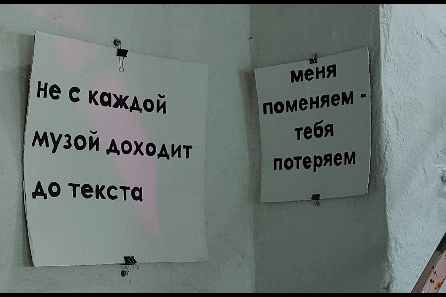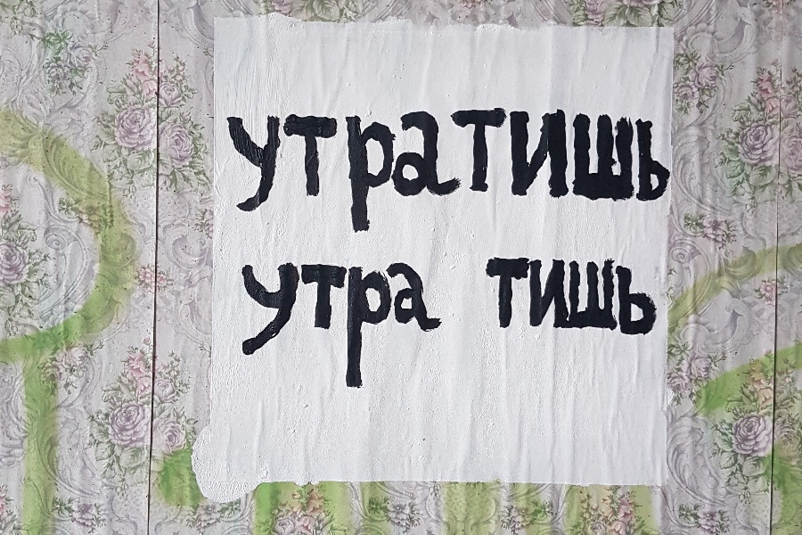 В конце 2021 — начале 2022 был ещё один проект, который мне нравится. В рамках создаваемого Музеем янтаря проекта «Лиминальные пространства» я внутри Янтарной мануфактуры писал на стенах тексты, которые должны были играть с пространством. Среди всех тестов было четыре, сложившихся в серию. Рассуждал я так «Что разрушает это здание, кроме человеческой небрежности? Конечно, время! При это само оно не разрушается. Просто катится колесом, подминая под себя всё. Утро, день, вечер и ночь — они повторяются каждые сутки». В общем, я написала четыре текста, в каждом из которых было две строки, и одна строка выступала анаграммой по отношению к другой (то есть строки состояли из одних и тех же букв). Тексты следующие: «Утратишь утра тишь», «Ночь я, но чья?», «Код ню ко дню». С вечером у меня так круто не получилось, но текст такой: «Вечерами Ева и мерч». Все эти анаграммы символизируют время, которое возвращается к себе же. Потому что в строках одни и те же буквы — зацикленность.