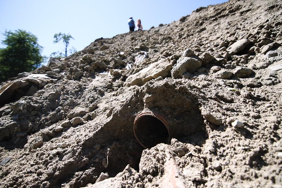 Спустившись с частно-муниципальной территории, журналисты обнаружили на месте и представителей прокуратуры Центрального района. Они составили протокол проверки, занесли туда найденные стоки (одну из труб нашел фотокорреспондент «Нового Калининграда.Ru», однако Николай Шевель уверил, что это труба дренажной системы) и изменение русла ручья. Сейчас нужно будет установить, кто все-таки засыпал ручей и тогда уже наказать виновного. Вот только когда это будет сделано – неизвестно, особенно если учесть, что в таком виде эта территория пребывает уже не первый год.