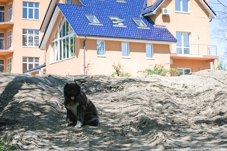 Сначала выгнать непрошенных гостей пытался раздетый по пояс мужчина, представившийся рабочим. Документов у него при себе не оказалось, зато подтверждения права присутствовать на частной территории он требовал исправно. На это, правда, у Румянцева и Захарова нашлись свои аргументы: мол, частная собственность заканчивается на 20-30 метров раньше, чем считает собственник. Кстати, собственником данного участка и построенного на нем дома, по данным «Нового Калининграда.Ru», являются вдова погибшего предпринимателя Ивана Шевалье Ольга и некая Лариса Козловская. Правда их там так никто и не увидел. Зато под конец инспекции удостоил всех вниманием представитель собственника юрист Николай Шевель.