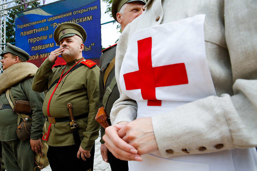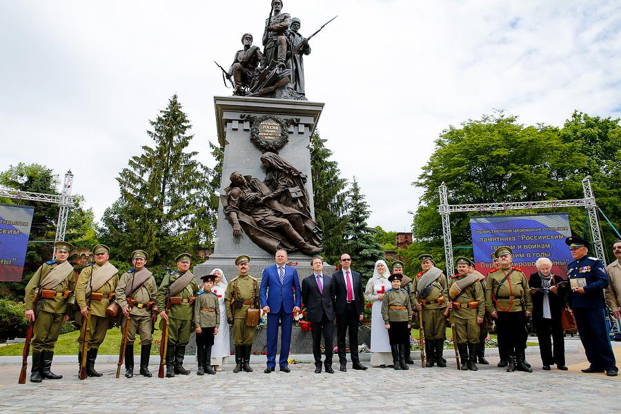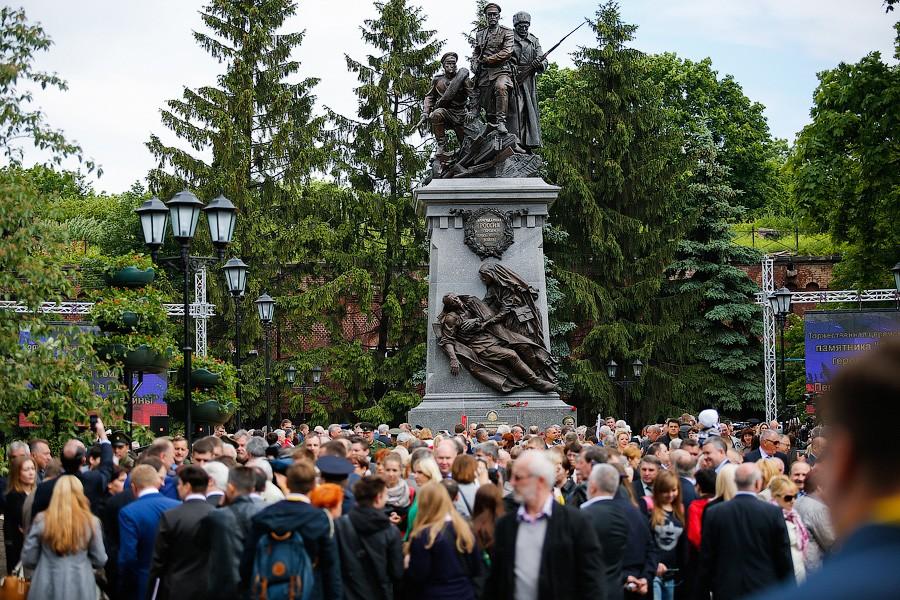 Закончилась торжественная церемония массовым фотографированием — почти все, кто пришел на открытие, старались запечатлеться на фоне монумента и калининградских реконструкторов в военной форме Первой мировой. «А теперь, пожалуйста, чтобы и памятник было видно, и штыки!» — давал указания фотографу автор композиции Салават Щербаков, перед этим со всех ракурсов фотографировавший собственную работу.