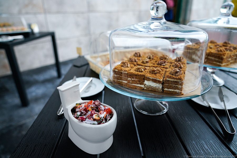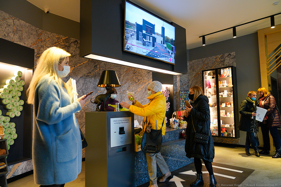 «Туалет-бутик» будет встречать гостей Экоплощадки первым. Идея простая: здесь смогут останавливаться туристические автобусы, следующие в Зеленоградск и на Куршскую косу (парковка имеется). Справлять нужду в оригинальных интерьерах, выполненных российско-австрийской группой дизайнеров, покупать тематические, часто эпатирующие и смешные сувениры (допустим, конфетницу в виде унитаза), обедать в кафе, гулять по парку (он тоже в планах), музею. Проект абсолютно коммерческий, на него не пошло ни одного бюджетного рубля (хотя пришлось даже канализацию с водопроводом из Зеленоградска тянуть), но с правильным социальным акцентом, поскольку создатели всего этого — люди, увлеченные темой экопросвещения. «Мы планируем ненавязчиво рассказывать людям о проблемах экологии, вести пропаганду разумного потребления. Наша амбициозная задача — стать базовой площадкой для всех тех, кто занимается экологией профессионально», — пояснил на открытии Сергей Шаранов, директор зеленоградского гостинично-развлекательного центра «ПАРАDOX» (Экоплощадка «Зеленый КОТ» — его часть).