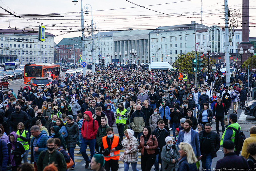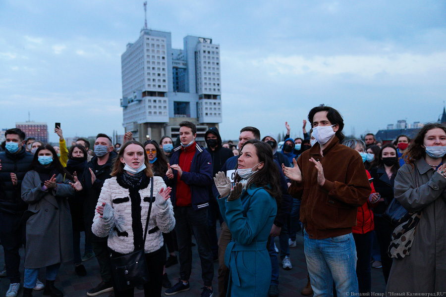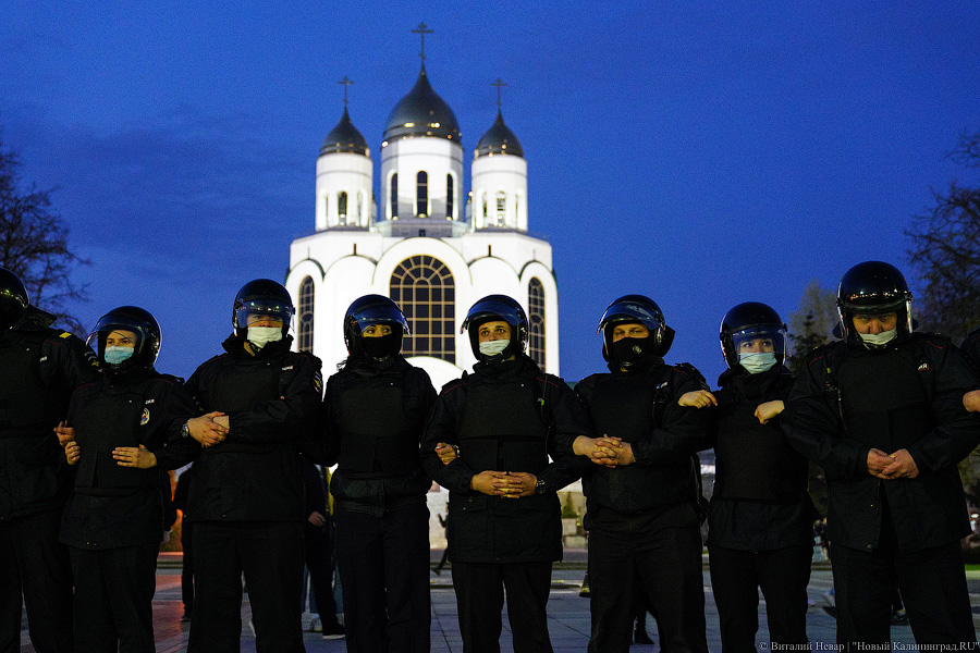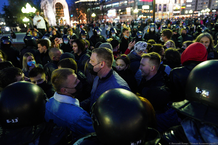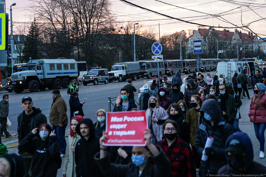 В среду, 21 апреля, по всей России прошли не санкционированные властями акции в поддержку оппозиционера Алексея Навального, который держит голодовку в колонии, требуя допустить к себе гражданского врача. Не стал исключением и Калининград, где, по неофициальным оценкам, несколько сотен человек собрались на площади Победы, устроили шествие к Дому Советов, а затем вернулись обратно — и оказались окружены кольцом силовиков.