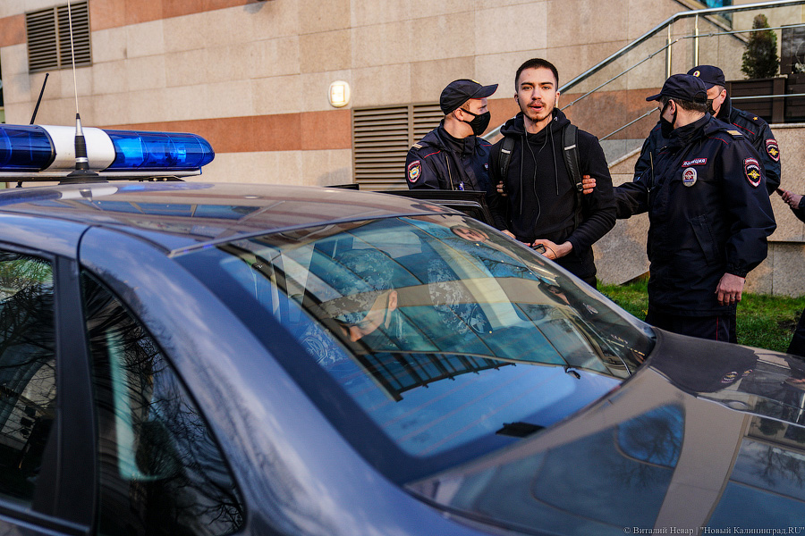 Задержания активистов начались еще до начала акции и продолжились непосредственно во время нее. В частности, были задержаны молодой человек, раздававший листовки на площади, блогер Николай Горелов, державший плакат с лозунгом «Свободу всем политзаключенным», и активист Иван Лузин. Всего, по данным правозащитного проекта «ОВД-Инфо», в Калининграде было задержано 24 человека. Некоторых из них после составления протоколов отпустили, других оставили на ночь в отделениях полиции.