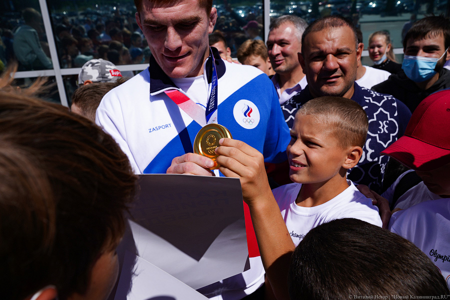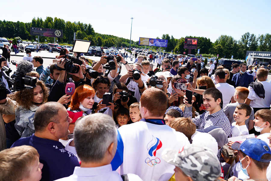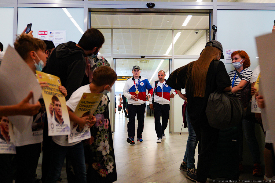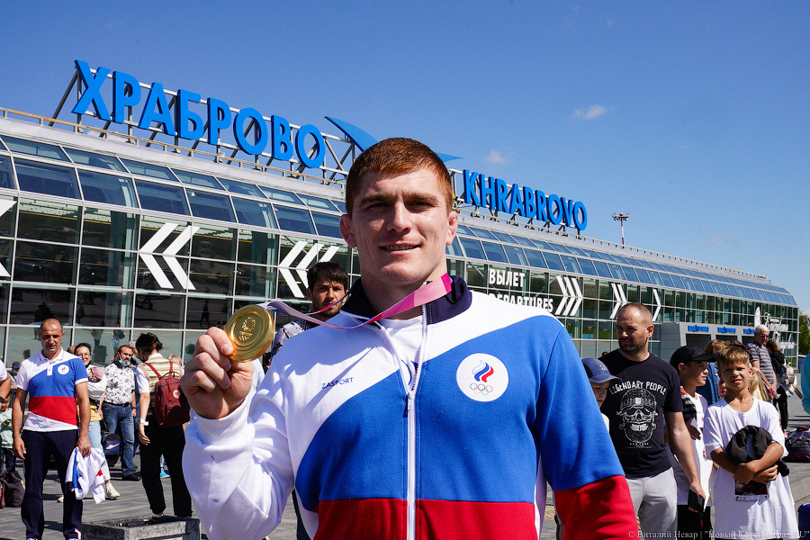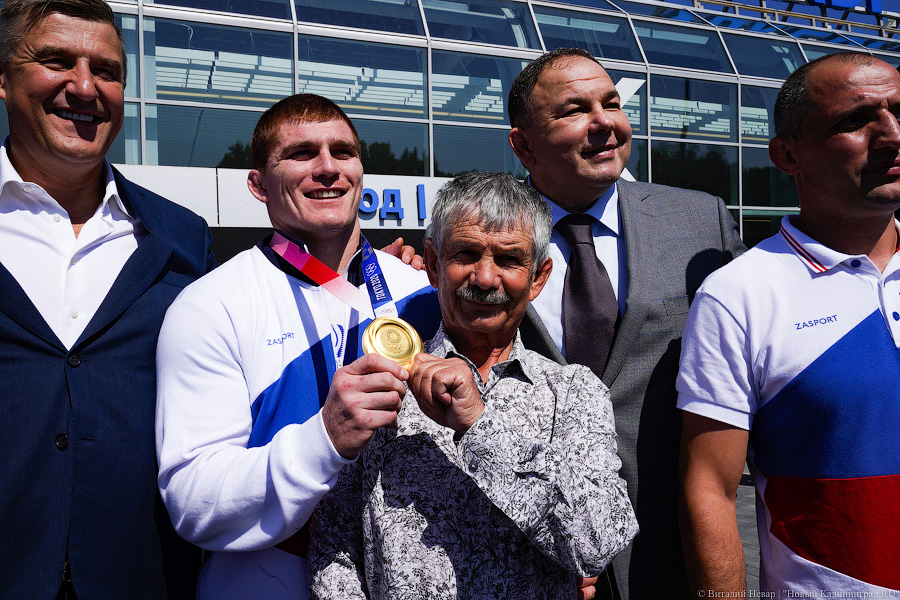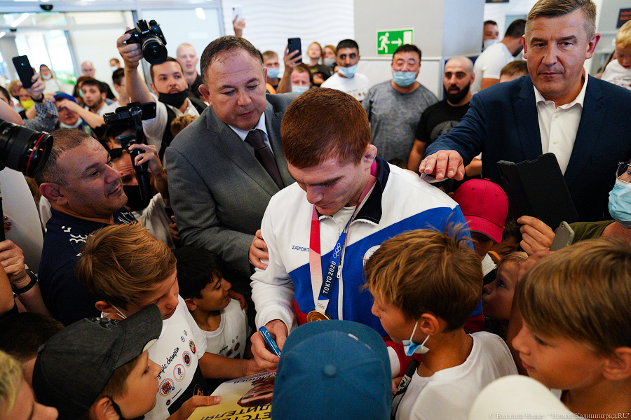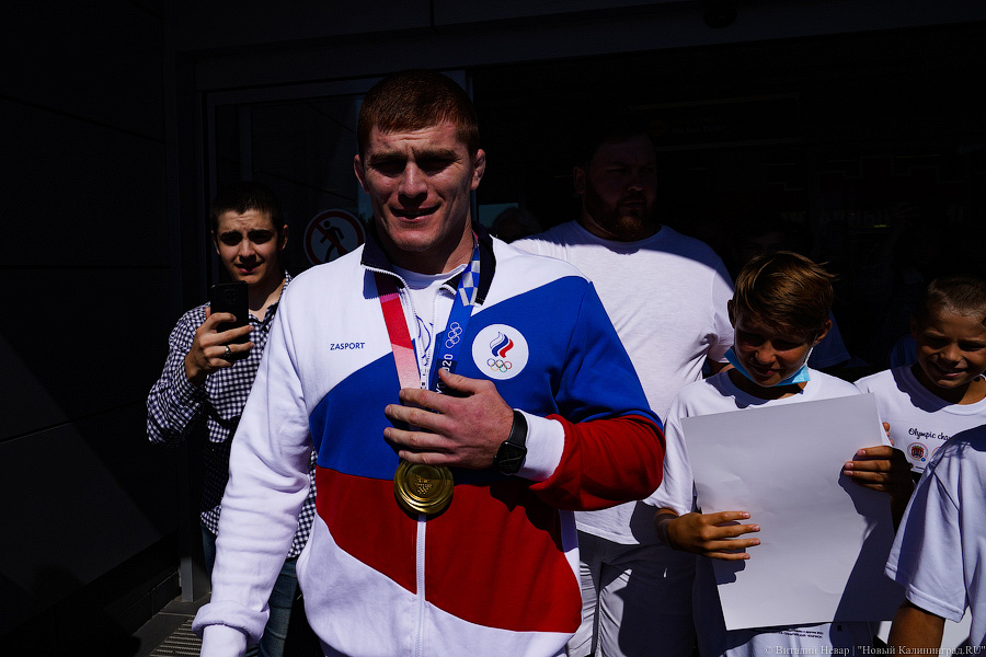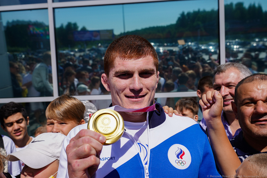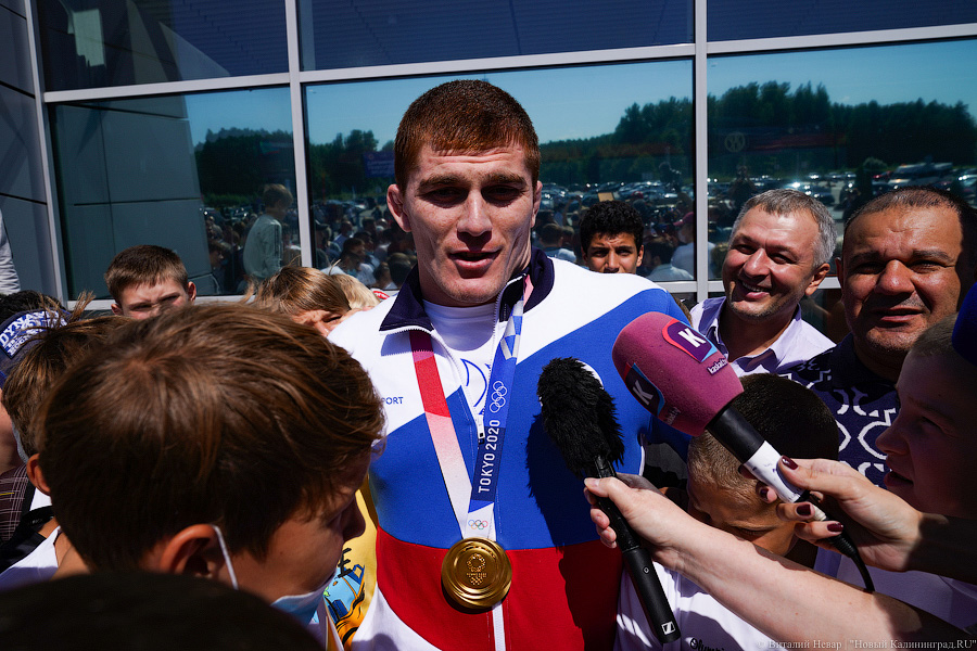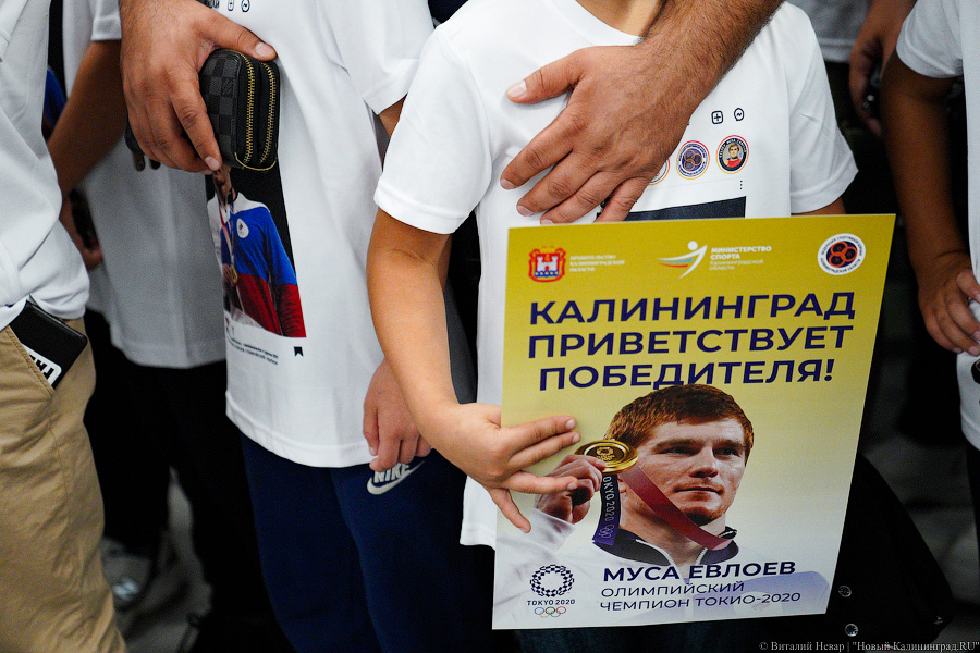 Борец греко-римского стиля Муса Евлоев, выигравший на Олимпиаде в Токио золотую медаль, в понедельник, 9 августа, прилетел в Калининград. В аэропорту «Храброво» его встречала масштабная делегация с министром спорта региона Натальей Ищенко и тренером училища олимпийского резерва Владимиром Хромовым, под руководством которого Евлоев начинал профессиональную спортивную карьеру. В Россию из Японии борец вернулся несколько дней назад и по прилете в Москву станцевал лезгинку. В Калининграде лезгинку танцевали уже встречающие для него.