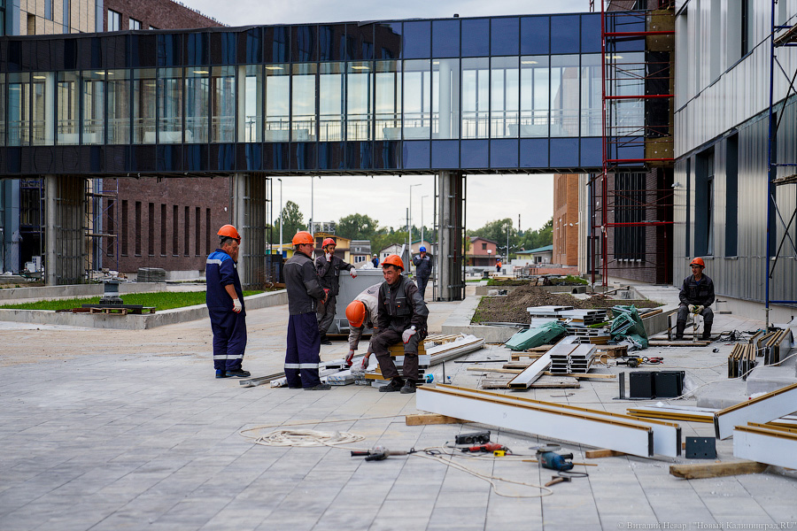 Он также посетовал, что Калининград просто не может обеспечить строительство такого комплекса не только материалами, но и персоналом. В регионе просто нет достаточно квалифицированных кадров. Хотя калининградцы на стройке все-таки работают, их 70 человек. По словам вице-премьера областного правительства Ильи Баринова, их зарплаты начинаются «от 70 тыс. рублей».