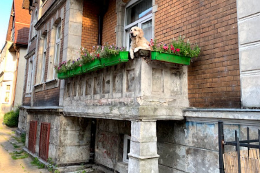 Золотистый ретривер на балконе стал главной достопримечательностью Гданьска в картах Google (фото)