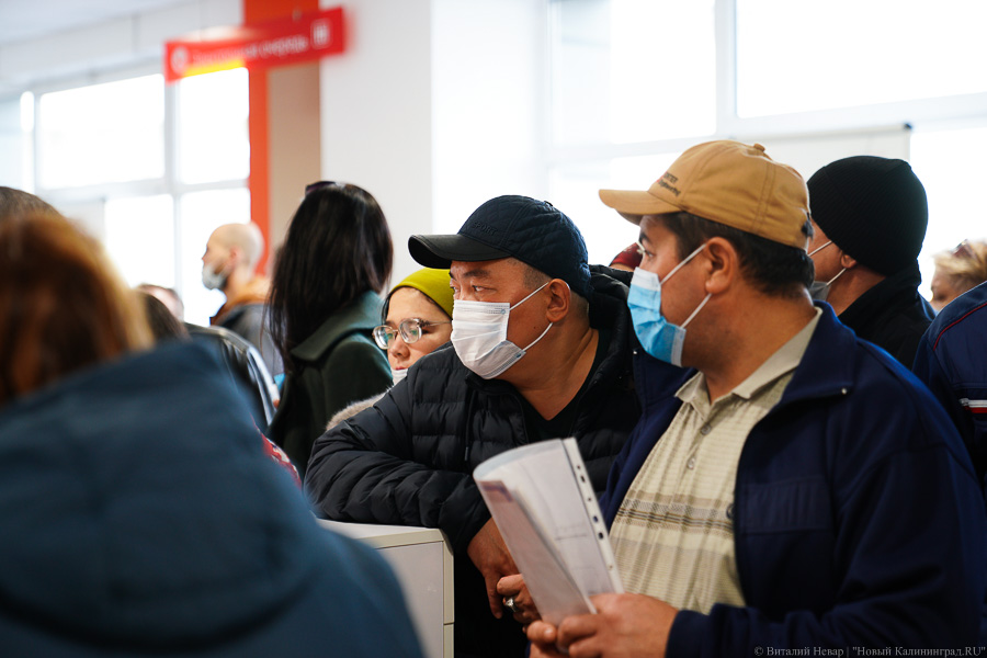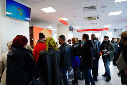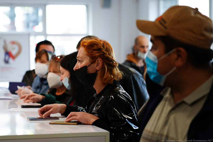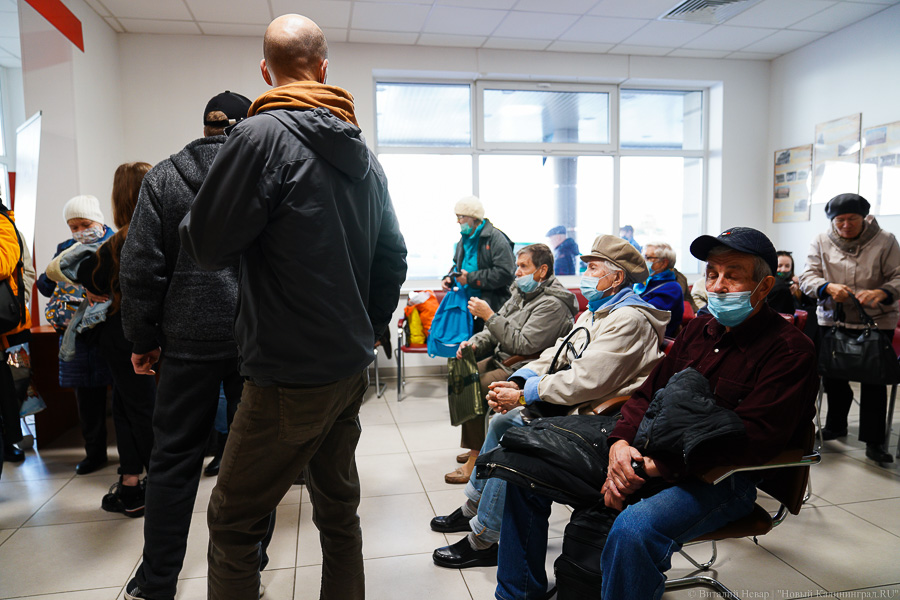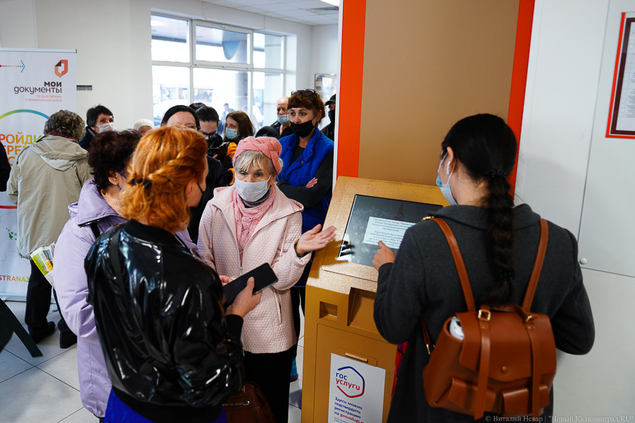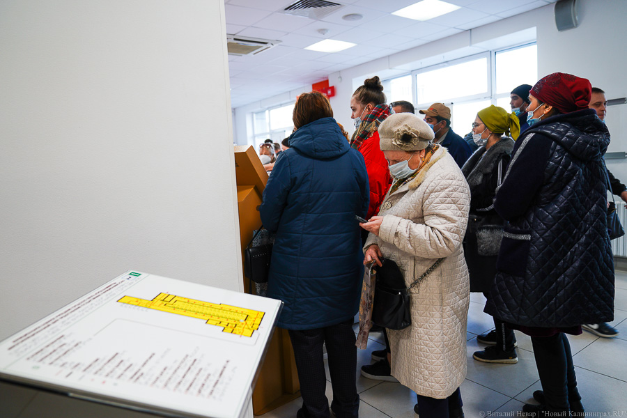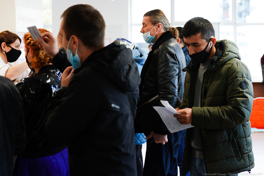 После объявления новых мер в регионе резко увеличилось количество желающих вакцинироваться от коронавируса. Однако очереди образовались не только перед мобильными пунктами, но и в МФЦ. Туда чиновники отправляют тех, кто не имеет возможности показать QR-код в телефоне или получить доступ к нему. В многофункциональном центре на площади Победы в последние дни наблюдаются масштабные скопления людей. Посетители часами стоят в очереди, чтобы распечатать свой QR-код или подтвердить учётную запись на портале госуслуг. За происходящим наблюдал фотокорреспондент «Нового Калининграда» Виталий Невар.