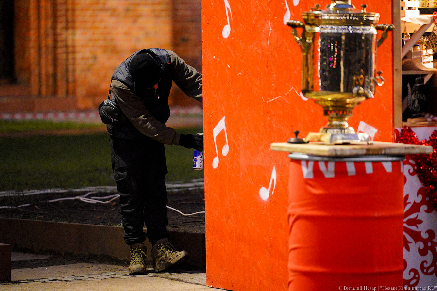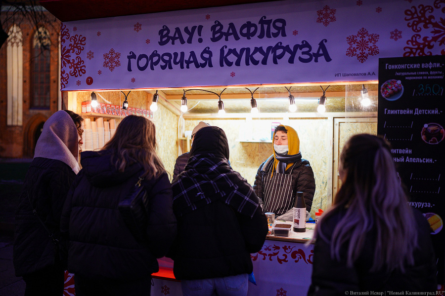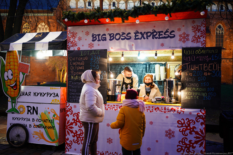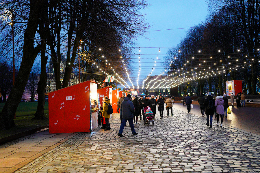 Кафедральный собор всё же дал старт новогодней ярмарке на острове Канта. До последнего момента не было понятно, состоится она или нет. Сначала туман напускал министр по культуре и туризму Андрей Ермак, говоря о том, что уличные ярмарки сейчас не запрещены, но и не очень-то разрешены, поэтому мероприятие на острове Канта остаётся под вопросом. Через несколько дней Кафедральный собор заявил, что ярмарка всё-таки будет. Правда, тут же одумался и сообщил, что объявление о ней сделано преждевременно, и всё будет зависеть от решения оперативного штаба. Тем временем на острове Канта продолжали монтировать торговые палатки, но рекламировать ярмарку не спешили даже в день открытия. Толп, как в прошлом году, пока не случилось. Может, потому что информация о ярмарке была едва ли не под грифом «совершенно секретно». А, может, потому что новогодняя ярмарка всё меньше напоминает праздник и всё больше — переход в метро. Теперь здесь торгуют не только глинтвейном, облепиховым чаем, трдельниками и горячими вафлями, но и янтарём, иконами, деревянными поделками, болоньевыми сумками, вязаными валенками, шапками, носками и женскими ободками. Планируется, что ярмарка будет работать до 10 января.