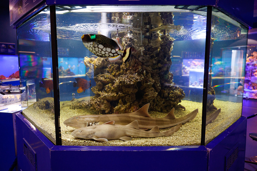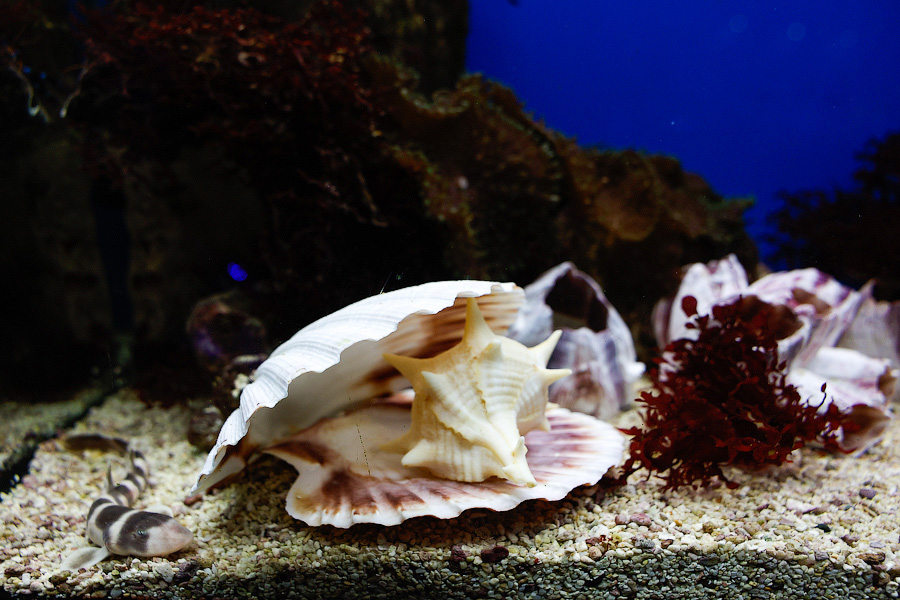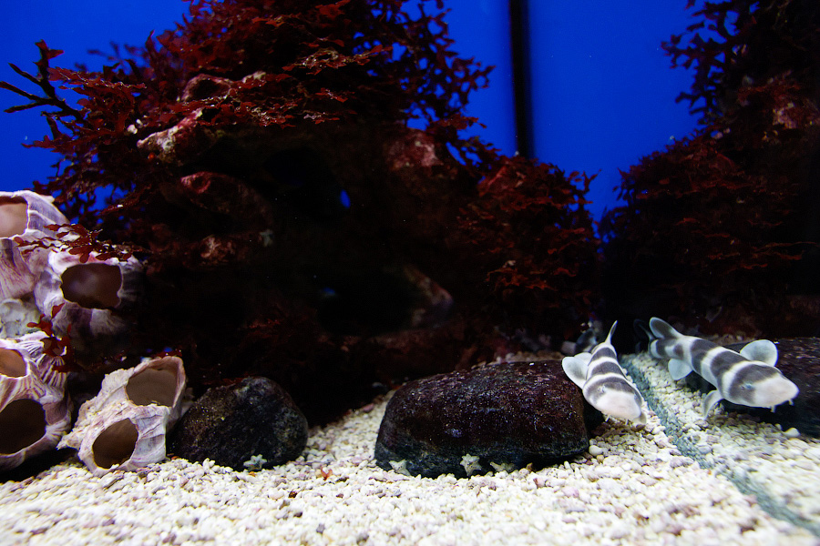В Музее Мирового океана родились два детёныша кошачьей акулы. «Сразу непонятно, мальчик или девочка. Это станет ясно через пару месяцев, когда проявятся половые признаки. Кушают животную пищу (мотыль, „ниточки“-волокна кальмара и так далее). Сейчас в аквариальном зале можно увидеть пять акул», — рассказали сотрудники музея. По их словам, «акулята-котята» капризничают относительно еды, как и полагается маленьким деткам: «то мотыля им подавай, то кальмарчика». С новорождёнными успел познакомиться фотокорреспондент «Нового Калининграда» Виталий Невар.