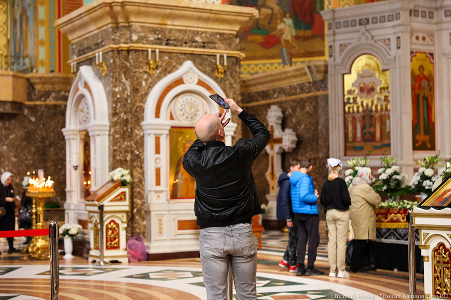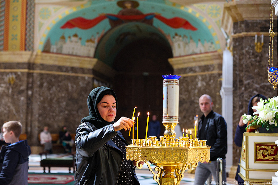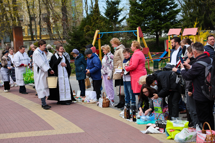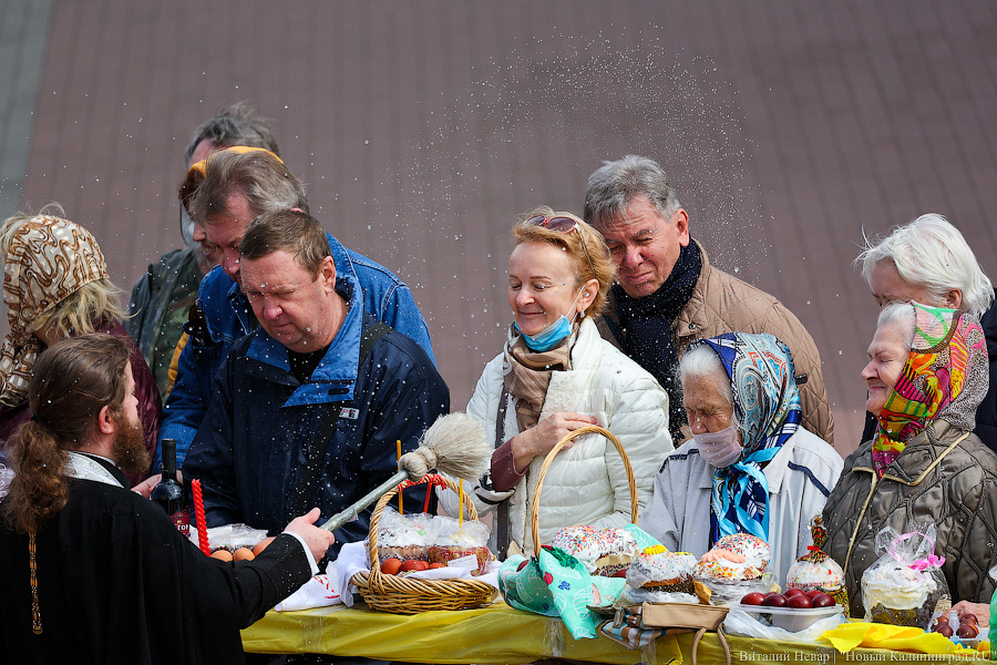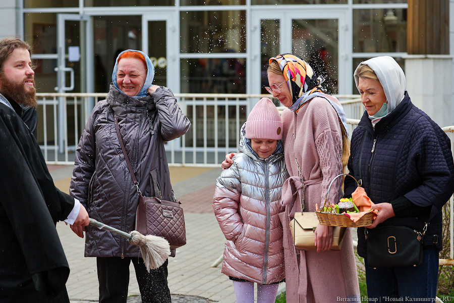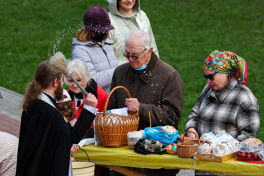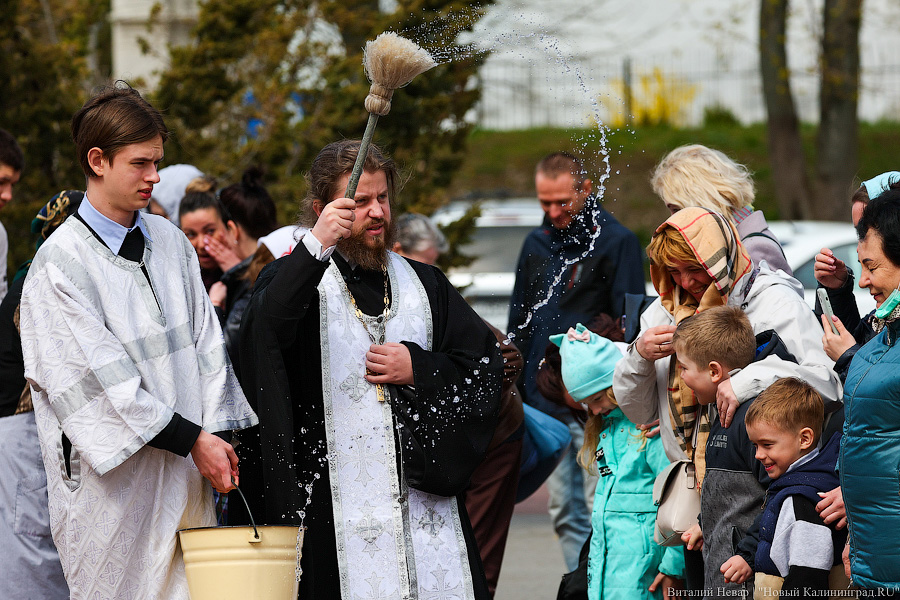 В субботу, накануне праздника Христова Воскресения, во всех православных храмах региона проходят обряды освящения традиционных пасхальных блюд — крашеных варёных яиц, ярких куличей, творожной пасхи и даже кагора. Вместе с православными калининградцами к храму Христа Спасителя пришёл и попал под брызги святой воды фотокорреспондент «Нового Калининграда» Виталий Невар.