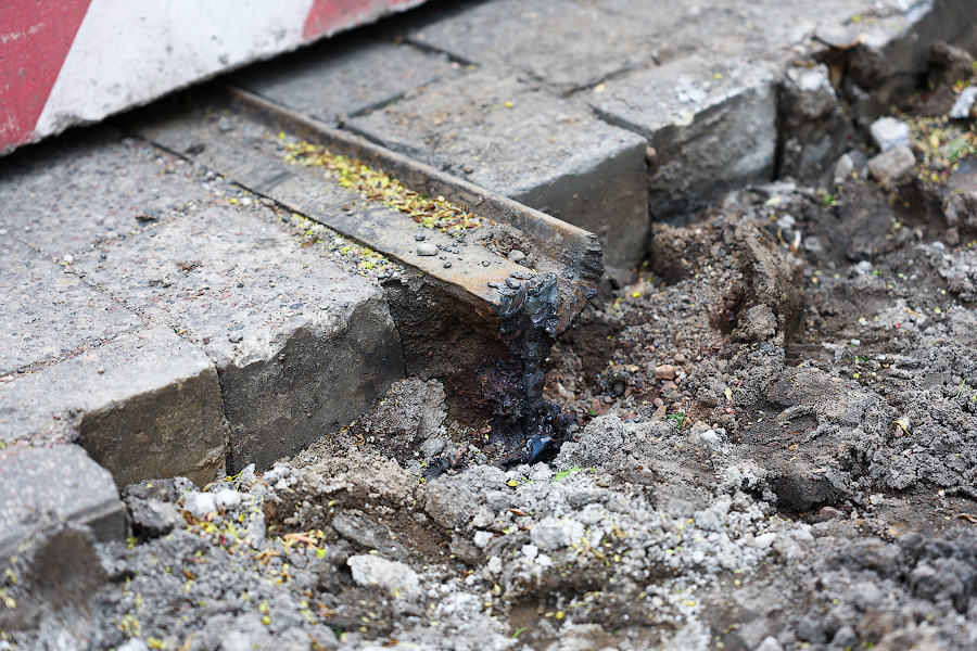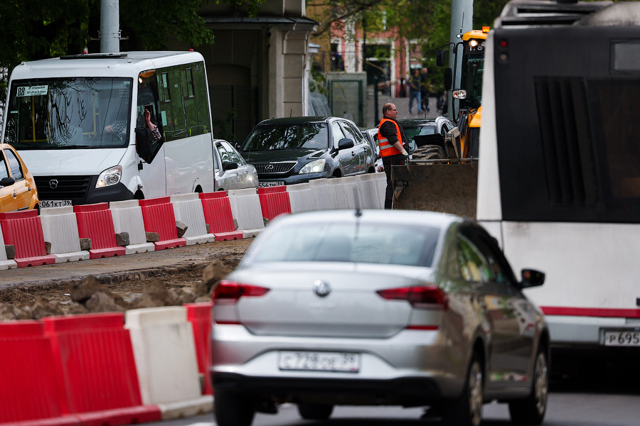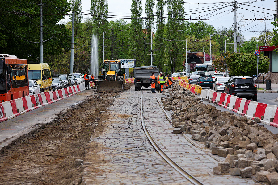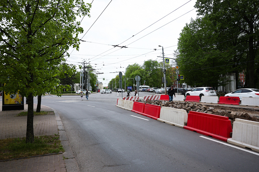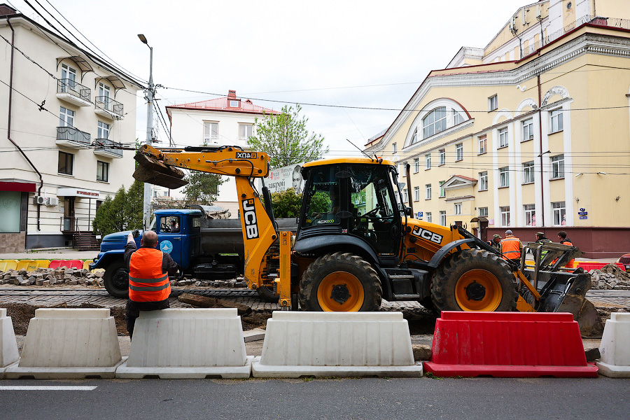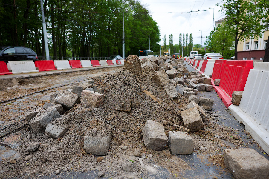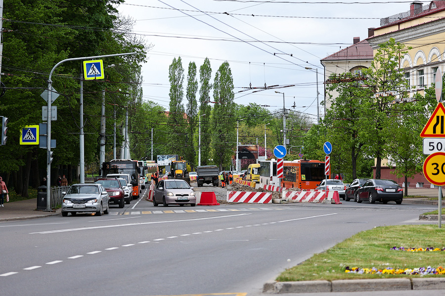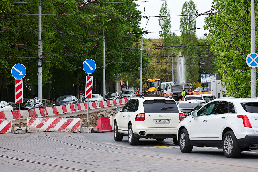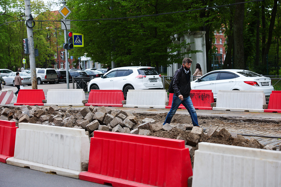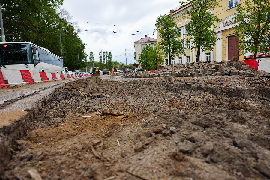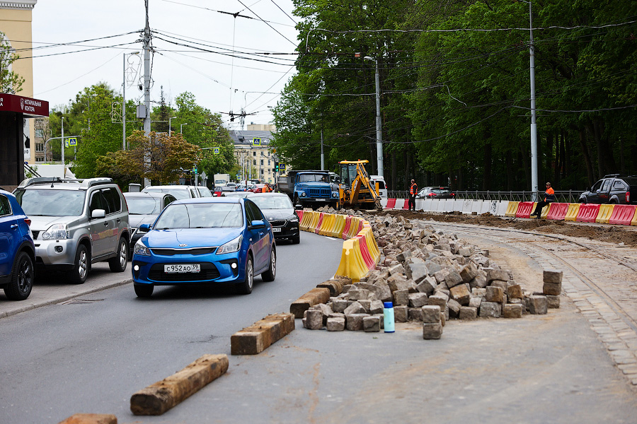 На проспекте Мира стартовал дорожный ремонт. Впрочем, ремонтируют не проезжую часть: здесь пытаются восстановить движение трамваев по третьему маршруту и попутно снимают брусчатку. Запустить «тройку» обещали к 9 мая, но что-то пошло не так: подрядчик не дождался многодневной очереди на границе и развернулся с грузом трамвайных рельсов. Пришлось заключать договор с новым и везти рельсы во второй раз. Сейчас горвласти осторожно говорят о том, что ремонт будет идти в течение двух месяцев и новых дат не называют. Работы привели к коллапсу: проспект Мира ожидаемо «встал».