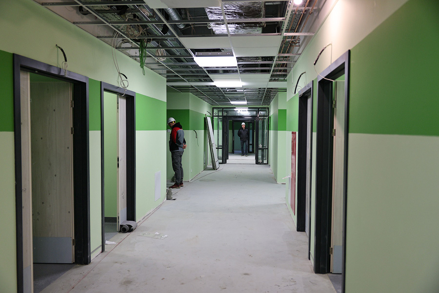 Так или иначе, сейчас там, где это возможно, идет отделка внутренних помещений. Но начать работы можно далеко не везде. Например, в радиологическом блоке они возможны только после сбора ускорителя. «Ускоритель — это, к сожалению, не тот элемент, который можно как коробку привезти, там открыл, поставил на фундамент — и все. Придется все равно его собирать по месту, подключать, запускать и так далее. А с февраля следующего года мы уже планируем выходить на полный комплекс пусконаладочных работ», — пояснил министр.