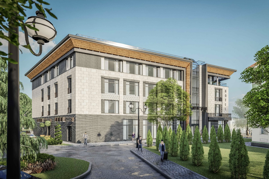 «Курортный проспект представляет собой мозаику из разных стилей и эпох. Это и сохранившиеся исторические здания, и архитектура советского периода, и современный новодел, выполненный в псевдоисторическом стиле. Для того, чтобы сложить эту мозаику, а также исходя из рекомендаций Зеленоградского городского округа и заказчика, было принято решение обойтись без радикального изменения наружных конструкций части здания, пристроенной в 1990-е годы», — пояснил автор проекта, архитектор Евгений Забродский.