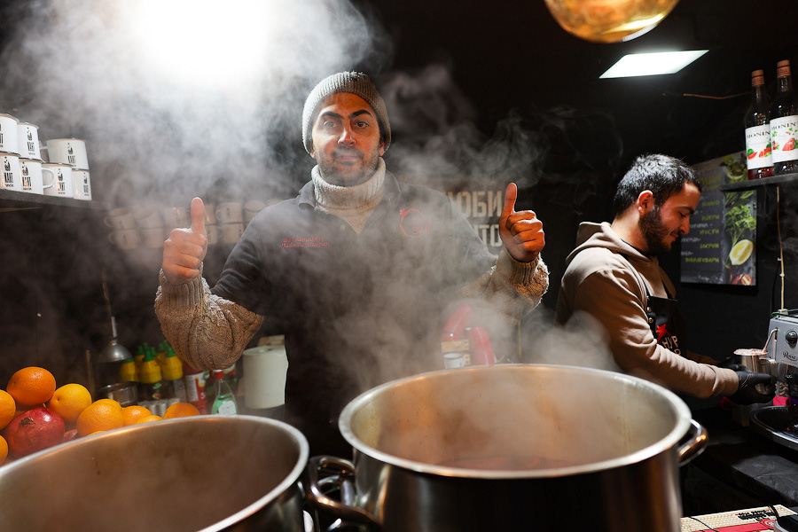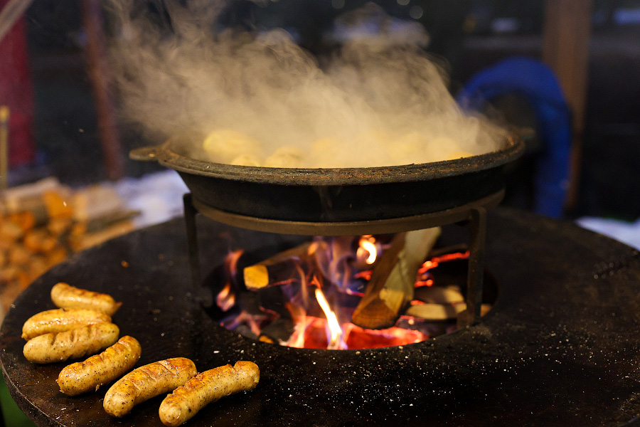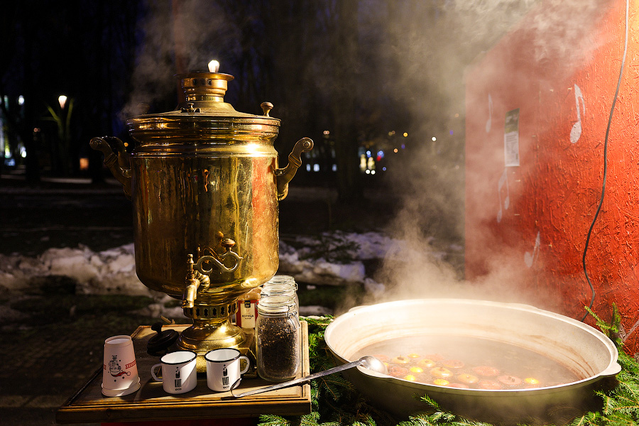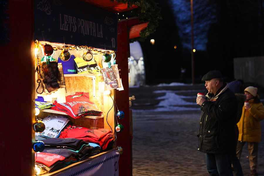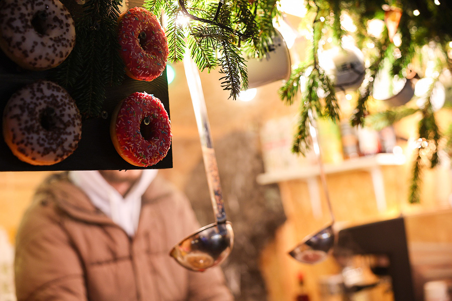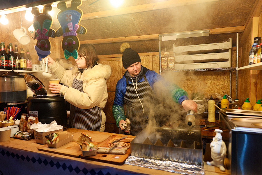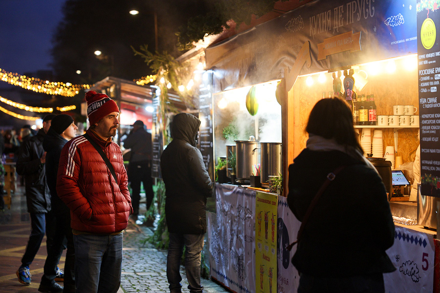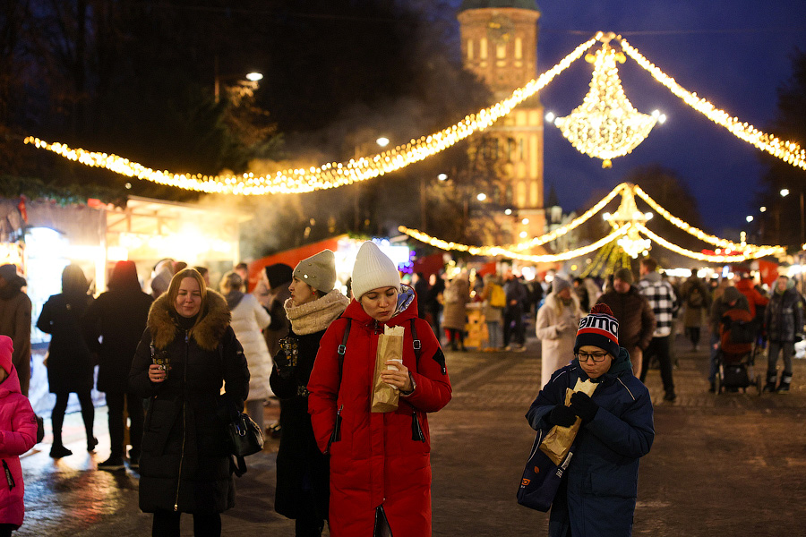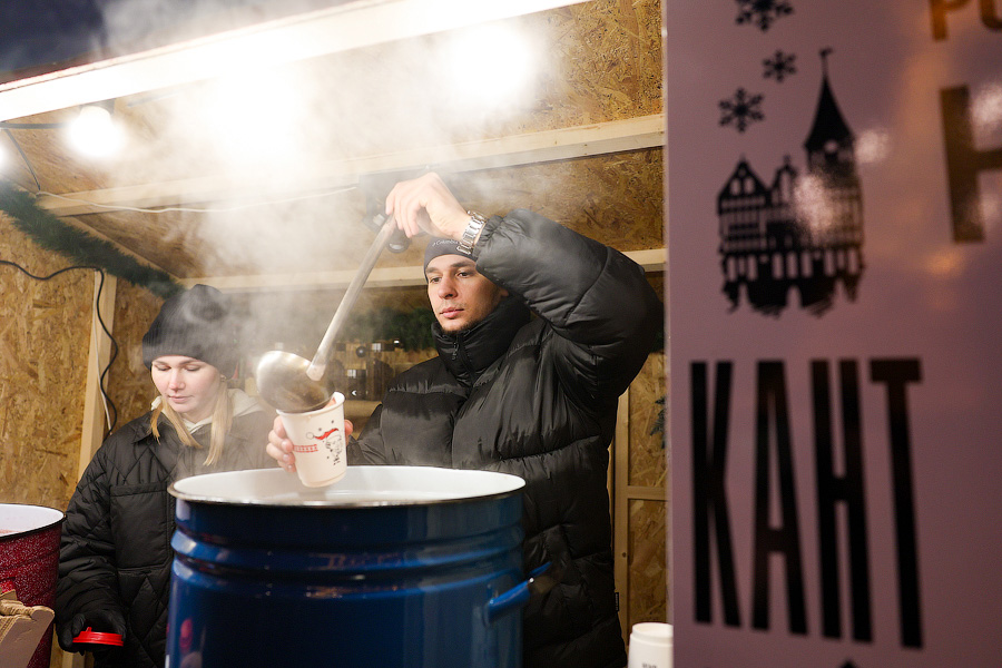 На острове Канта по уже сложившейся декабрьско-январской традиции развернулись калининградские повара и ремесленники. Там открылась новогодняя ярмарка — все началось еще в четверг, к субботе она приобрела более-менее ощутимый размах. «Впервые на острове откроется пряничная, начнут подавать суп в стакане и жарить миндаль в карамели — словно каштаны, на глазах у гостей. Наряду с рождественскими яблоками, штолленами, ароматными запеканками, льежскими вафлями появится гастрономическая шаурма. Обновленные бургеры. Еврейские специалитеты. Но главным сюрпризом, конечно, станет горячий напиток, который мог родиться только в этих местах. KantWein напомнит о том, что традициям острова уже не одна сотня лет», — завлекали гостей организаторы перед открытием.