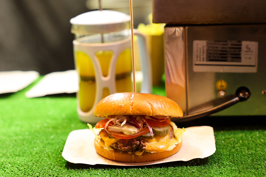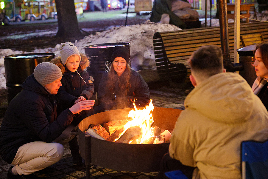 И хоть аншлага в первые ярмарочные выходные не случилось, посетителей в итоге оказалось довольно много — больше, чем можно было бы ожидать по нынешним суровым временам. Впрочем, кое-что на них как бы намекало: аскетично украшенный тир — особенно колоритно смотрелась стрелявшая из винтовки немолодая женщина; греющиеся у костра дети; бургерная а-ля старый запорожец. Но в целом заметно, что организаторы старались устроить праздник изо всех сил. Получилось или нет — оцените с помощью фоторепортажа Виталия Невара.