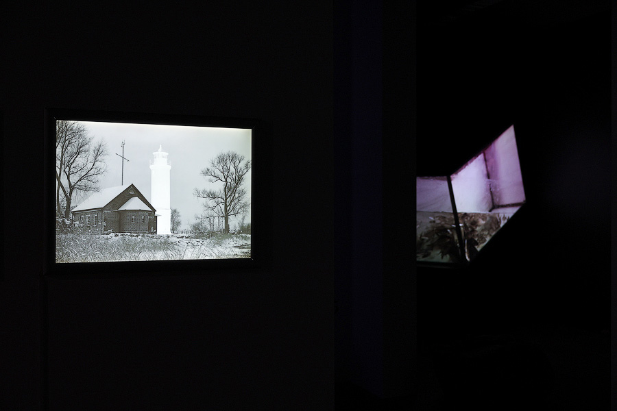 «Три точки, три тире, три точки» — международный сигнал бедствия и название коллективной работы Александра Матвеева, Евгения Милованова и Сергея Михайлова. Художники обращаются к маякам на побережье Калининградской области — в самые ненастные дни они указывали безопасный путь, но сейчас свет даже самых надёжных ориентиров гаснет, они уходят в прошлое и в лучшем случае становятся музейными объектами. В медиаинсталляции оставили от маяков только прозрачный (призрачный?) силуэт. Так, глядя на небо, мы видим свет, излучённый звёздами десятки, а то и сотни лет назад.