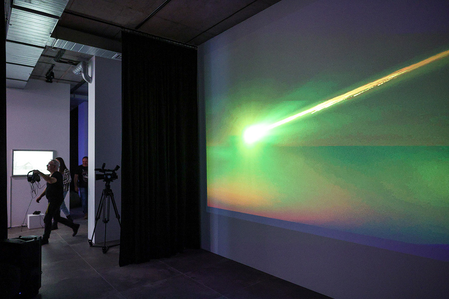 Черноту неба разрезает яркая пульсирующая точка, за которой тянется пылающий шлейф. Это видеоинсталляция «Аврора» арт-группы «Синий суп». Краткий миг полёта художники растянули во времени — объект никогда не достигнет конечной цели. А нам остаётся только вглядываться в него, подобно героям Каспара Давида Фридриха, и гадать, что же это на самом деле. Может быть, падающая звезда, и имеет смысл загадать желание, но 2022 год подсказывает иные ассоциации. «Не совсем очевидно, что это комета или звезда. Это может быть и какое-нибудь инопланетное тело, неопознанный летающий объект или подбитый самолёт», — говорит участник группы «Синий суп» Даниил Лебедев.