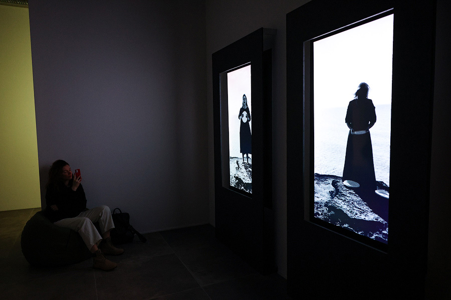 «Сегодня очень важное для нас событие, и оно совпало с природным переходом из ночи в день, потому что вчера была самая длинная ночь в году», — говорит руководитель Балтийского филиала ГМИИ им. Пушкина Елена Цветаева. Проект «Пульсирующее многоточие», которым открывается новое пространство, пытается найти свет «в сумраке происходящей действительности» — именно так говорится в аннотации. Кураторы задумали его летом, находясь, как и многие из нас, «в состоянии полной растерянности», но решили не множить мрак, а создать выставку про надежду и поиск опоры.