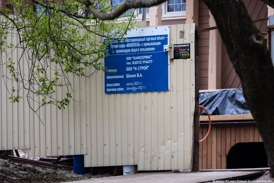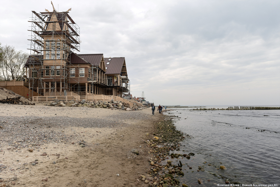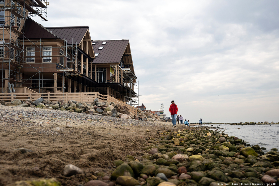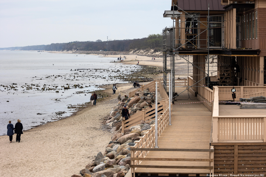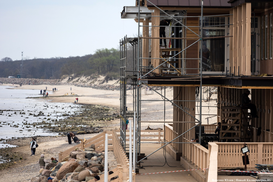 На пляже Зеленоградска обрисовались контуры монструозного «нестационарного торгового объекта» (так его называют власти всех уровней). Кафе «Монополь» строится на участке в направлении косы (за «Амбаром» и «Дачей»), продолжив и усугубив бесславную практику борьбы со всем живым, что осталось на побережье.