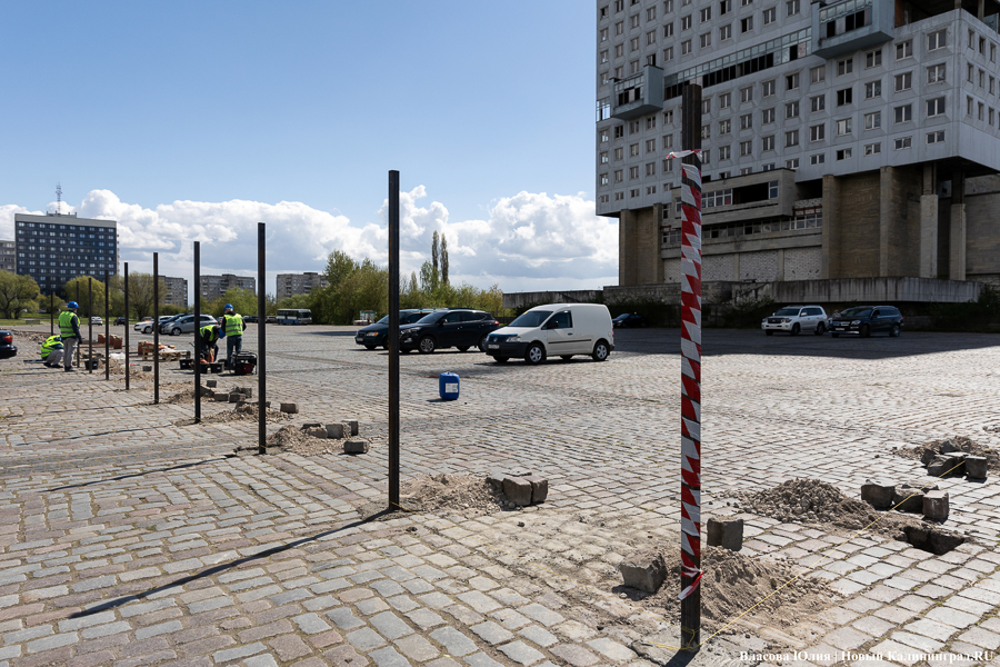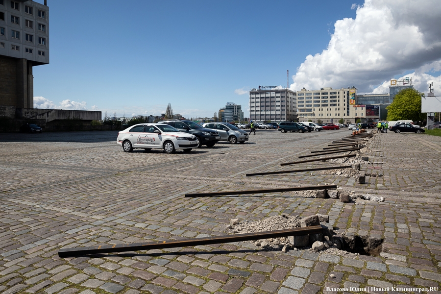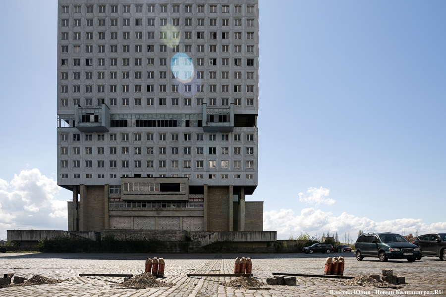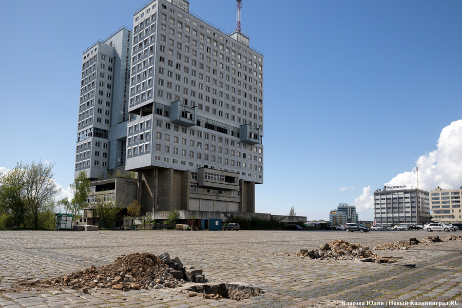 На парковке у Дома Советов в Калининграде начали устанавливать забор — здание готовят к сносу, передаёт корреспондент «Нового Калининграда».