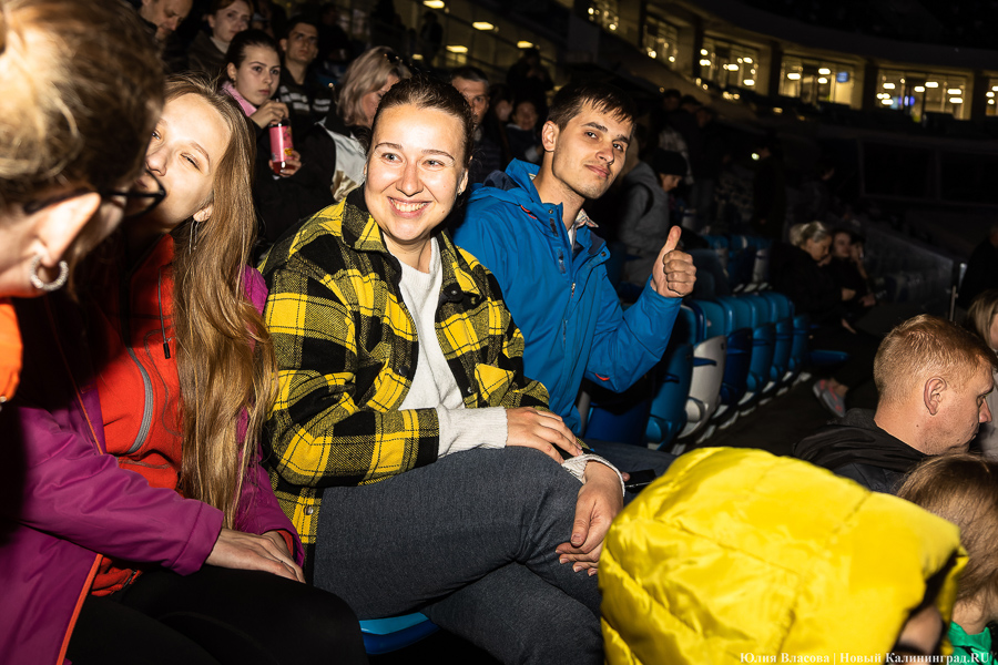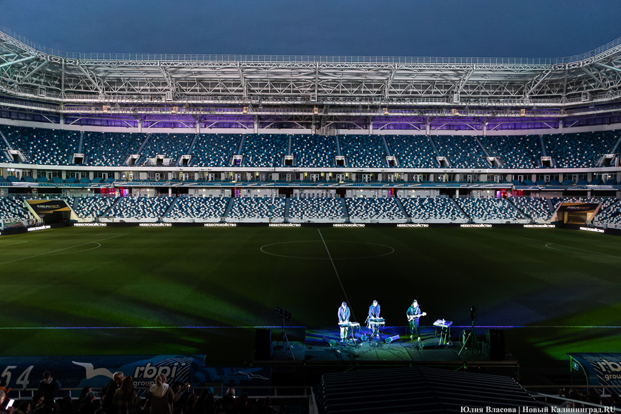 Повторить опыт с концертом решил и стадион «Калининград». В прошлую Музейную ночь на арене играл студенческий оркестр колледжа им. Рахманинова, на этот раз «Полёт шмеля» и прочую классику рискнули заменить на техно-поп группы «Темноямск» и не прогадали — зрители показали редкую для Музейной ночи усидчивость. Как правило, посетители акции лихорадочно перебегают из музея в музей, от экспоната к экспонату, как будто массово обостряется так называемый синдром FOMO — навязчивая боязнь пропустить что-то значимое. Быть может, ответом послужит тот факт, что стадион не был частью Музейного кольца (списка музеев, куда за 700 рублей покупают единый билет). Вход сюда был бесплатным: прогулялся по набережной, выпил стаканчик кофе, послушал музыку — и гнаться никуда в попытке отбить билет не надо. Одно из любимых развлечений калининградских музеев — выставку автомобилей — организовали и на стадионе. Правда, скопление фольксвагенов и ауди 80-90 годов выпуска больше напоминало обычную городскую парковку.