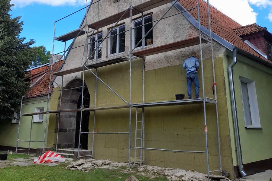 Чиновники пояснили, что в здании вместе с домом культуры располагается библиотека, и для сохранения книжного фонда необходимо поддерживать определённую температуру, что невозможно обеспечить без утепления фасада здания. «В доме культуры и в библиотеке проводятся мероприятия, ведётся кружковая деятельность, и в зимнее время года в неутеплённых помещениях заниматься не совсем комфортно. В связи с чем в настоящее время проводятся работы по утеплению фасада здания. Используемый современный материал не нанесет вреда рисунку. По окончанию ремонта будет рассмотрен вопрос о воссоздании образа исторического рисунка с привлечением художников и других специалистов в данной области», — сообщили в администрации Зеленоградска.