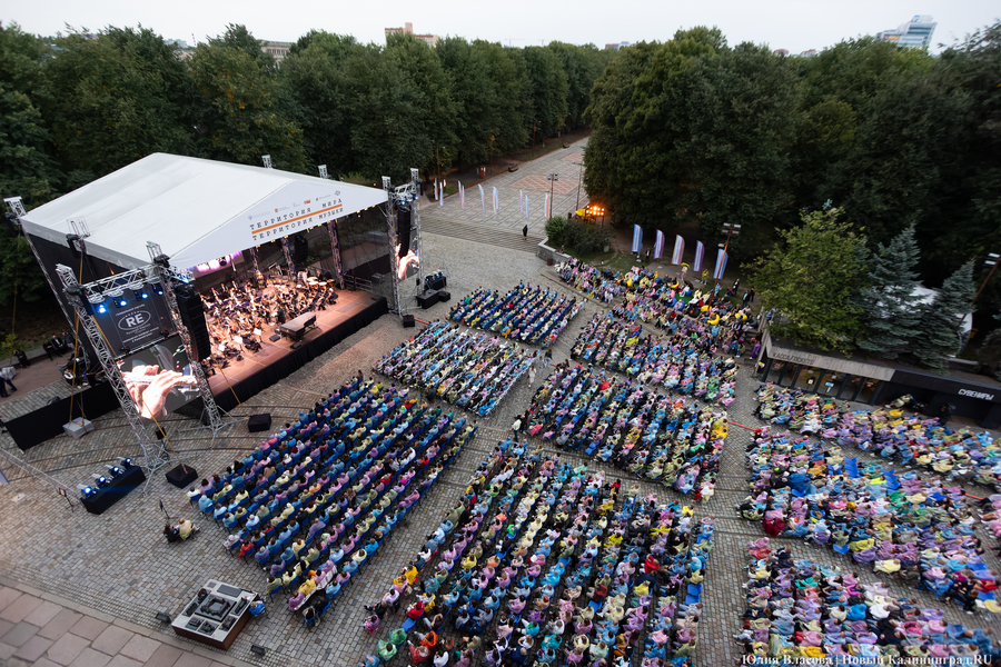 Музыкальный фестиваль «Территория мира — территория музыки» прошёл на острове Канта с 25 по 27 августа. Перед зрителями выступили скрипач Вадим Репин и лауреаты XVII Международного конкурса имени Петра Чайковского, а в заключительный день фестиваля на сцену вышел, пожалуй, самый прославленный российский пианист Денис Мацуев в сопровождении Российского национального оркестра. Он исполнил «Рапсодию» на тему Паганини Сергея Рахманинова и «Бурлеску» Рихарда Штрауса. Также в этот вечер под открытым небом на острове Канта прозвучала музыка Феликса Мендельсона и Петра Чайковского. За дирижёрским пультом находился художественный руководитель Новосибирского театра оперы и балета Дмитрий Юровский. Концерт проходил под открытым небом, поэтому зрителям пришлось слушать Дениса Мацуева в разноцветных дождевиках, которые раздали организаторы. К счастью, сильного ливня не случилось.