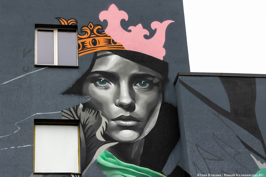 На фасаде торгового дома на Ленинском проспекте, 7-9 (старая «Европа») нарисовали мурал с женщинами-птицами. Авторами проекта стали художники Fault Studio.