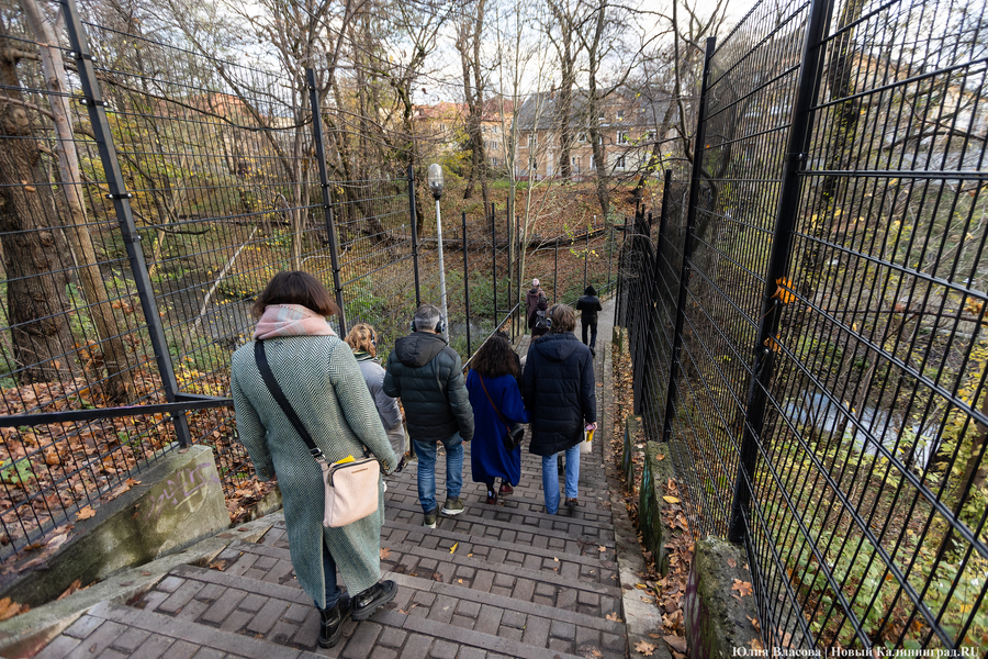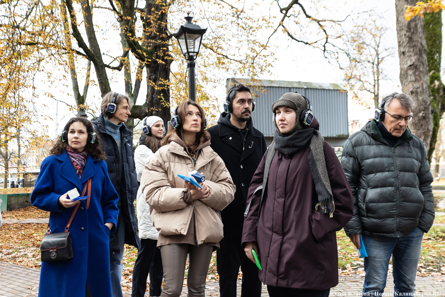 Зрители идут от Научной библиотеки к площади Победы. В ушах звучит диалог о том, что в послевоенном Калининграде стоял неистребимый запах гари. В этот момент прямо перед носом проезжает автомобиль, обдавая улицу дымом. Всё, что попадает в поле зрения во время театрализованной прогулки, немедленно становится её частью. Дальше путь лежит к Северному вокзалу, безымянным дворикам у Паркового ручья, тихим улочкам за Драмтеатром, где еще не успели убрать брусчатку, неприкаянным руинам у зоопарка: «Архитектура — мать развалин». И на протяжении всего маршрута зрители будут пытаться увидеть Калининград таким, каким его мог увидеть Иосиф Бродский, если бы гулял здесь.