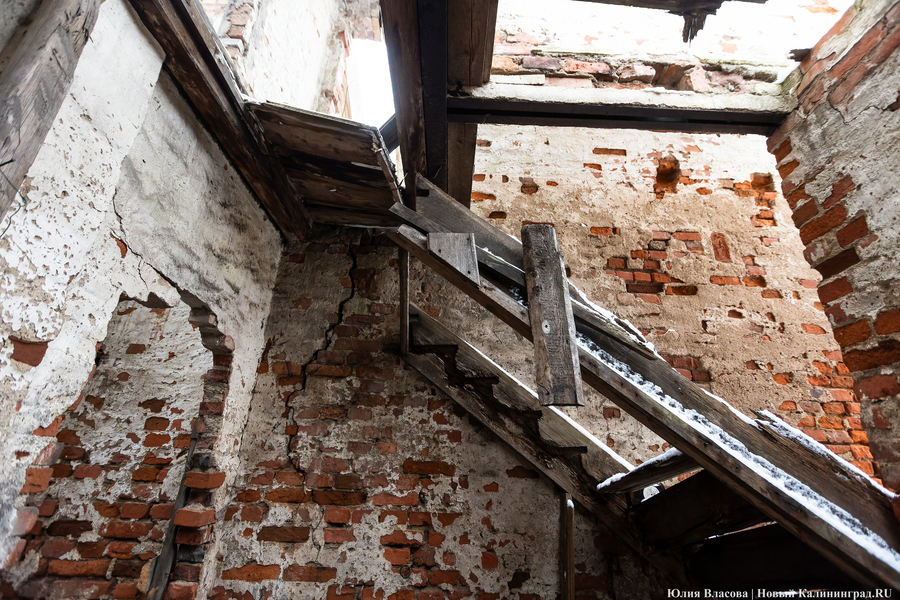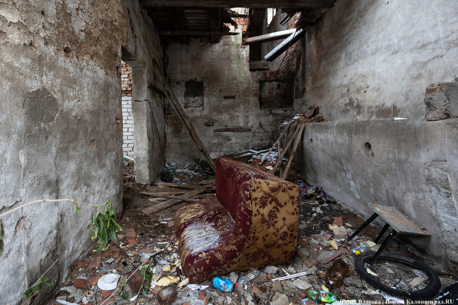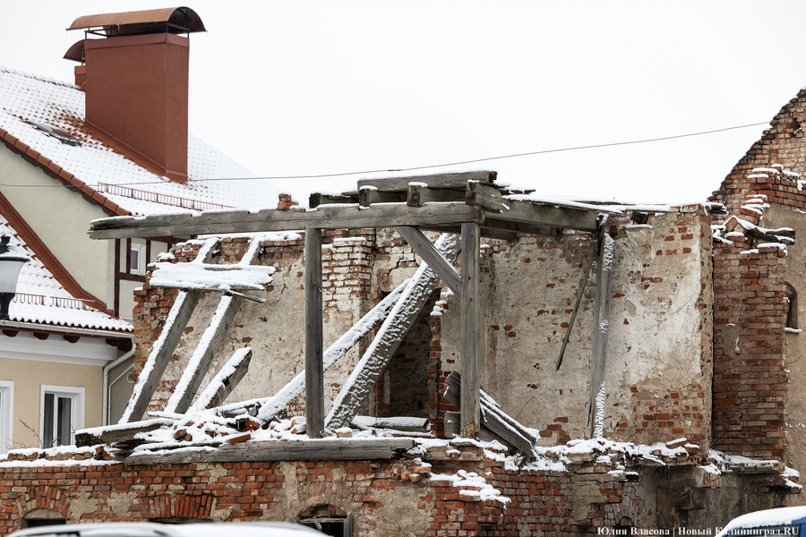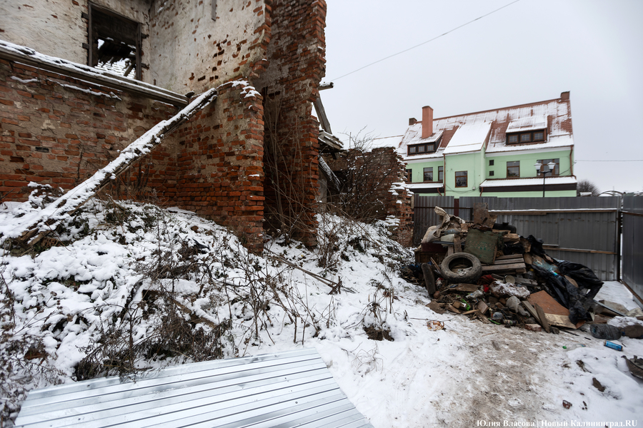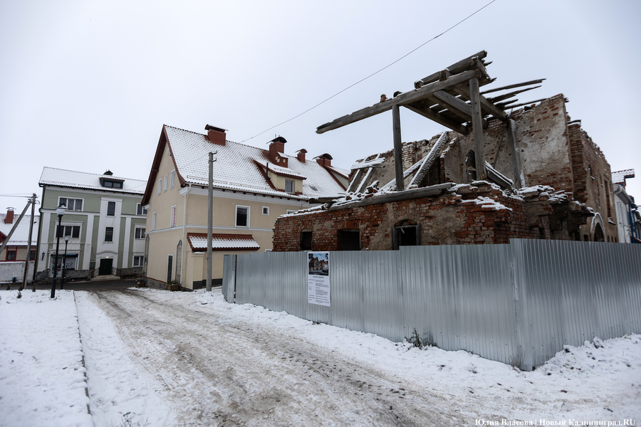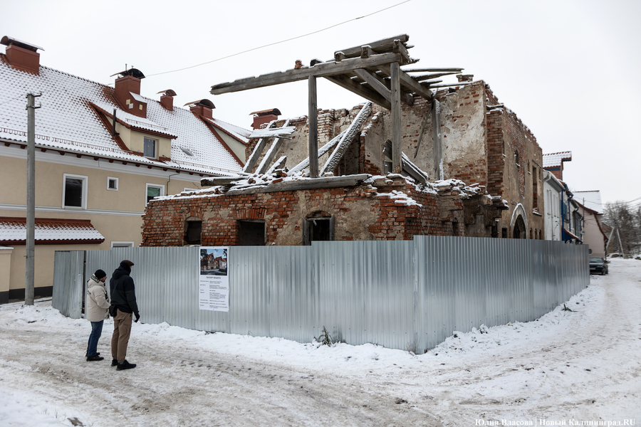 В минувшую пятницу прораб Василий Гайналий рассказал «Новому Калининграду», что расчистка началась с левого (более разрушенного) здания. Он же рассказал, что в четверг осмотр объекта проводили представители региональной Службы охраны объектов культурного наследия.